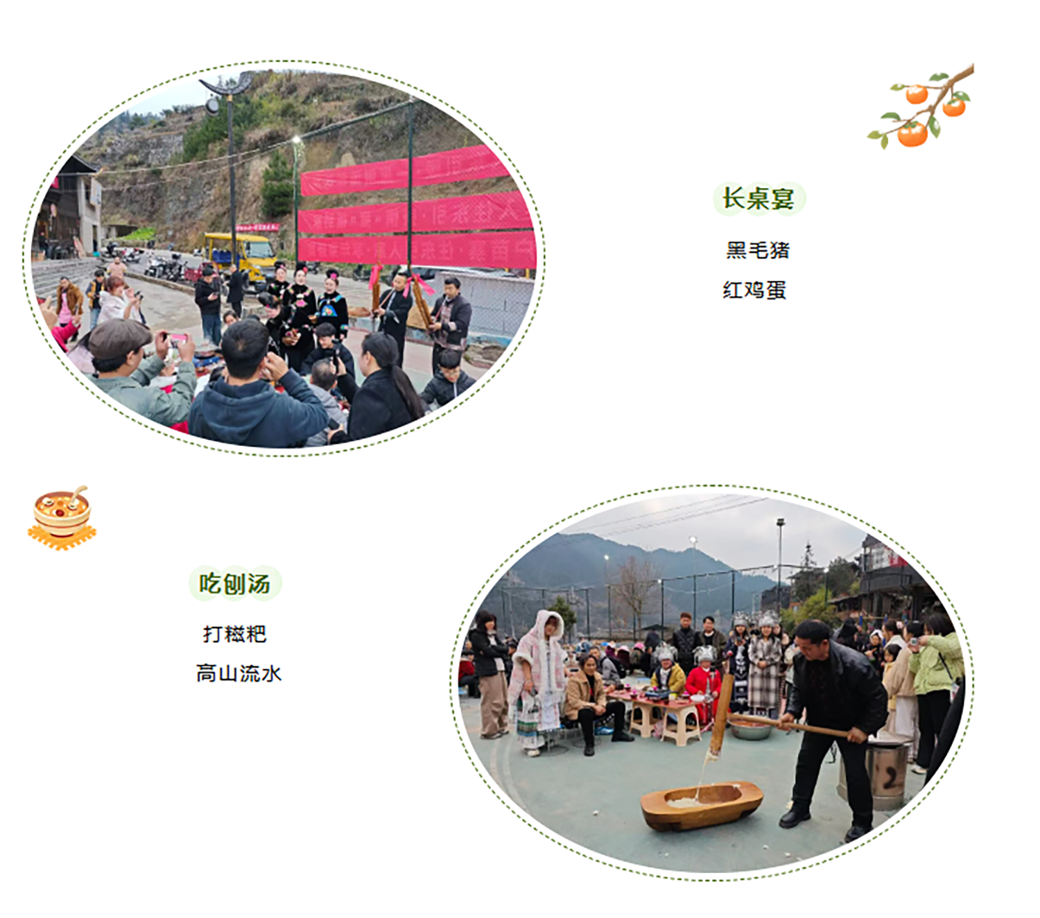 🍚 长桌宴+高山流水敬酒+打糍粑+红鸡蛋祈福