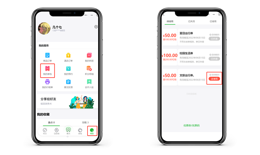 点击[去使用]跳转【2022黔东南文旅消费券专区】购买旅游线路、旅游景区、旅游商品、酒店民宿,旅游特产等,并在支付时自动减扣。