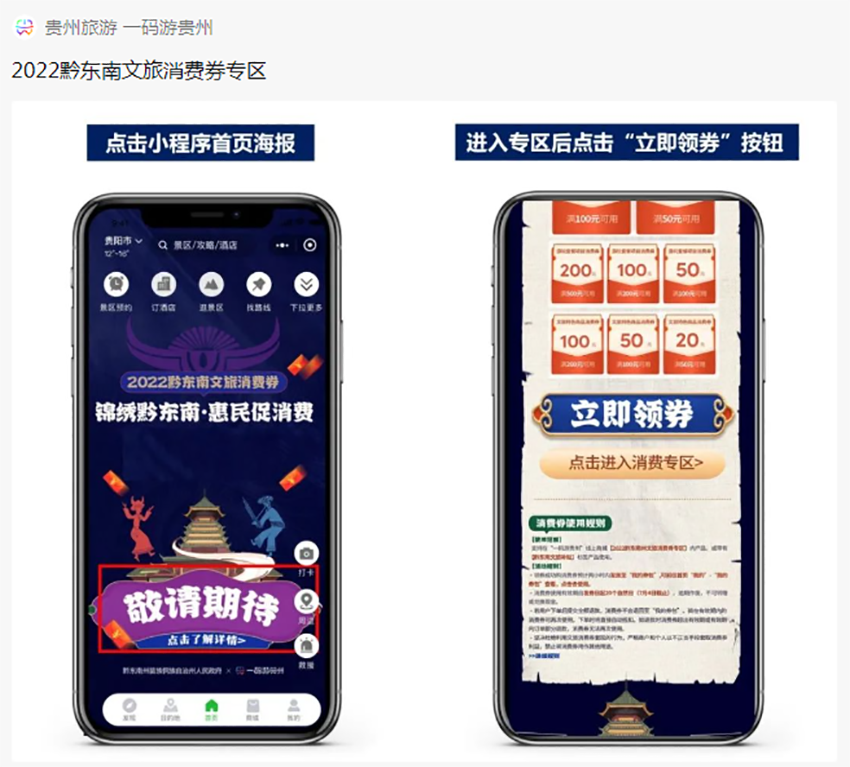 消费券仅支持在“一码游贵州”小程序线上商城【2022黔东南文旅消费券专区】内使用。