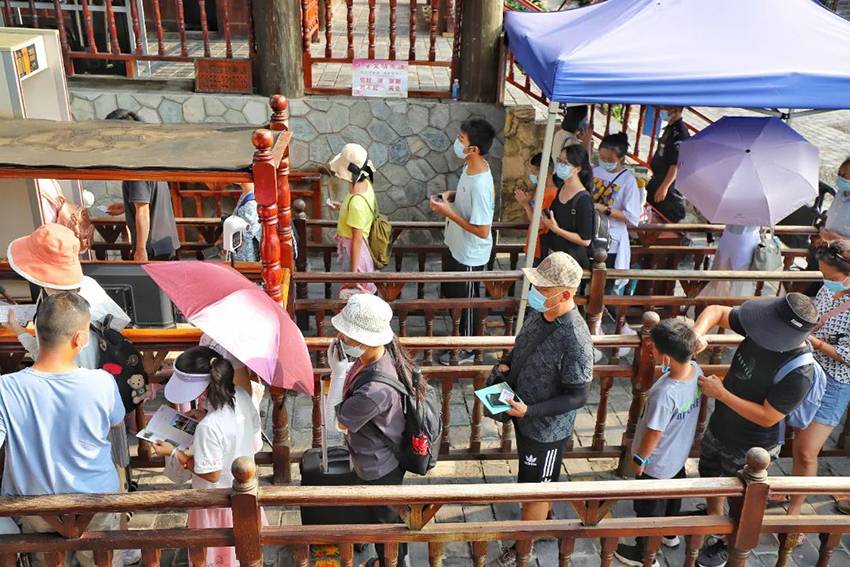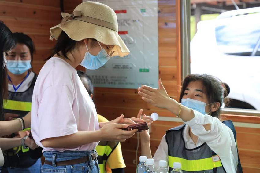 眼下正值暑期旅游高峰,西江千户苗寨景区秩序井然。景区通过全面的防疫准备,在严防严控的基础上,提供安全保障,在游客服务中心出入口、观景台、等重要易聚集区域安排工作人员,引导游客佩戴口罩,扫健康码测温入园,并加强疏导,避免拥堵,确保防控到位。
