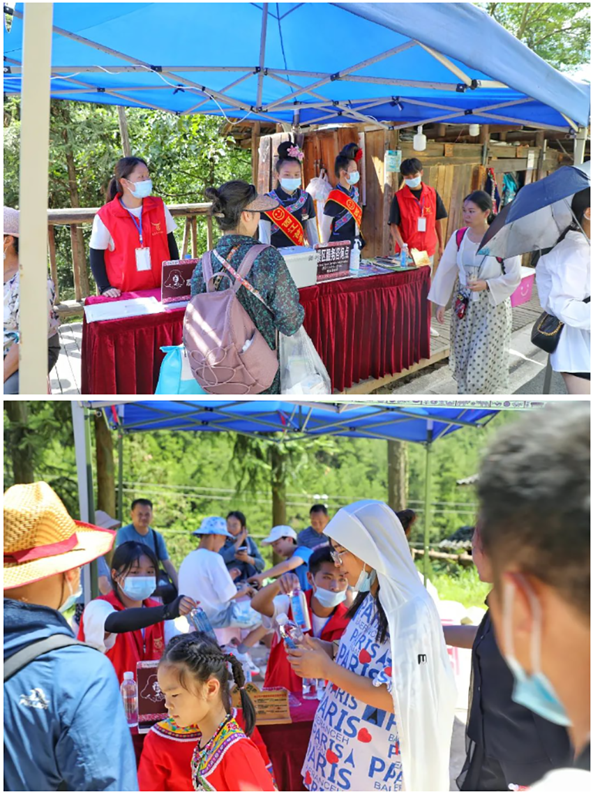 西江千户苗寨景区还加派了旅游志愿者佩戴醒目的“志愿服务”绶带,积极做好游客疏导服务和咨询服务工作。