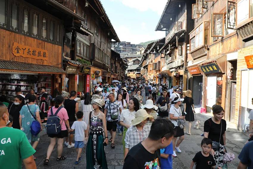 作为全国热门旅游目的地,苗寨凭借独特的自然景观和民俗文化旅游资源优势,吸引了全国各地的游客纷至沓来。暑期以来,西江千户苗寨景区持续迎来旅游客流高峰,景区内游人如织,秩序井然,旅游复苏效果显著。