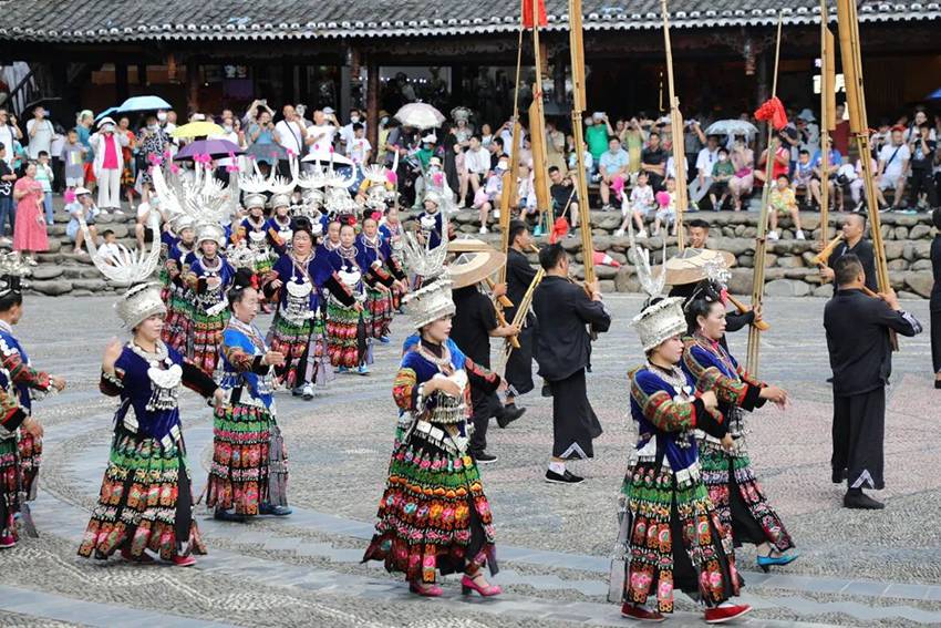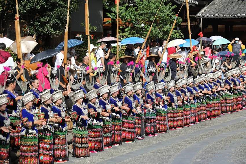 在做好疫情常态化防控措施基础上,西江千户苗寨景区推出丰富多样的旅游产品,引导推动全域旅游发展,20多项丰富多彩的民俗文化活动轮番上演,“点燃”广大游客热情,为游客送上节日旅游文化盛宴。