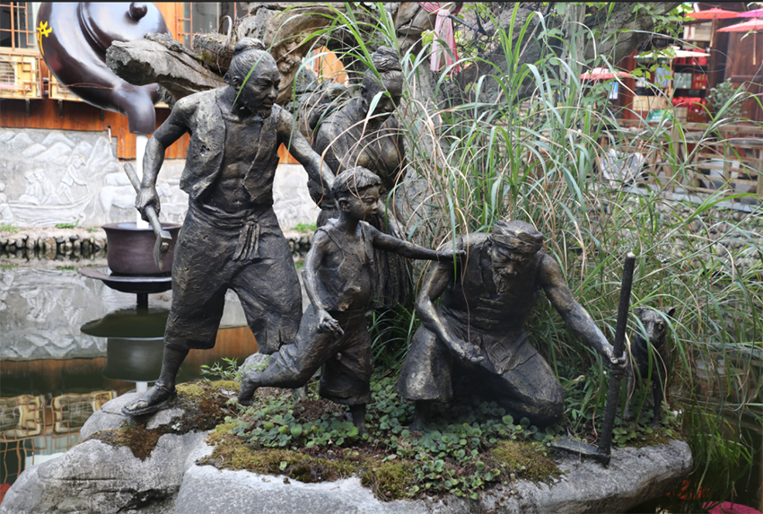 嘎歌古巷内有一汪清泉,名为“源西江”,顾名思义是先民们来西江定居最早的源头。池水中心矗立着一座苗族先民雕像,见证了西江的历史变迁,也成为西江更为浪漫的所在。