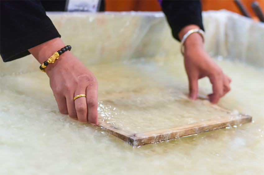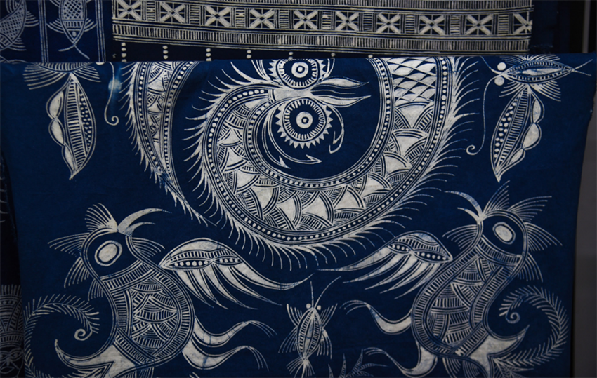 走进蜡染店,在蜡染师傅的指导下,经过点蜡、染色、脱蜡、清洗等环节,不一会儿便能制作出一件精美的蜡染制品。蜡染素以做工精细、色调素雅、内涵丰富而闻名于世。