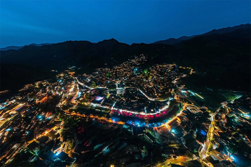 正月十五明月圆,月圆人圆情更圆。夜晚的西江千户苗寨灯光璀璨,火树银花,如耿耿星河,美得令人心醉。