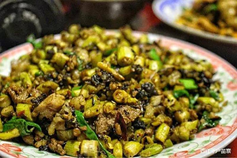 长桌宴是西江千户苗寨最为隆重的苗族宴席,已有超过千年的历史,号称“千年不散的宴席”。苗族长桌宴上的菜品主要是苗族的传统佳肴,有鼓藏肉、鸡稀饭、雷公山带皮牛肉、黑毛猪腊肉、酸汤鱼、苗王鱼、山泉鸡、鱼酱酸、韭菜根、米豆腐等等。