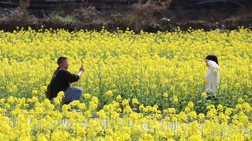 春日无忙事,只为赏花忙。阳春三月,西江千户苗寨的油菜花争相竞放吸引了不少游客慕名而来,有的穿行于花海,有的驻足静闻花香,有的身着苗服旅拍,有的在留影记录这美丽的春日风光,享受着人与自然融为一体的快乐。