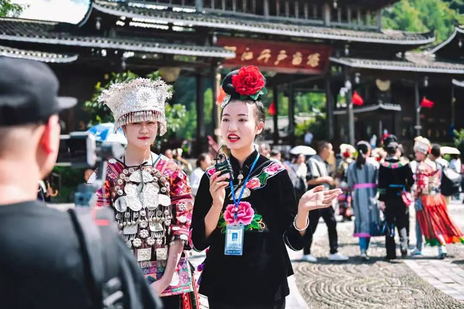 活动内容:由两名景区优秀导游围绕十二道拦门酒、高山流水、原生态表演、嘎歌古巷非遗项目体验等民俗文化活动进行体验沉浸式直播,在中国旅游日当天通过抖音和微信视频号平台的线上形式,带领游客“云游西江千户苗寨”,沉浸式体验西江民俗风情。