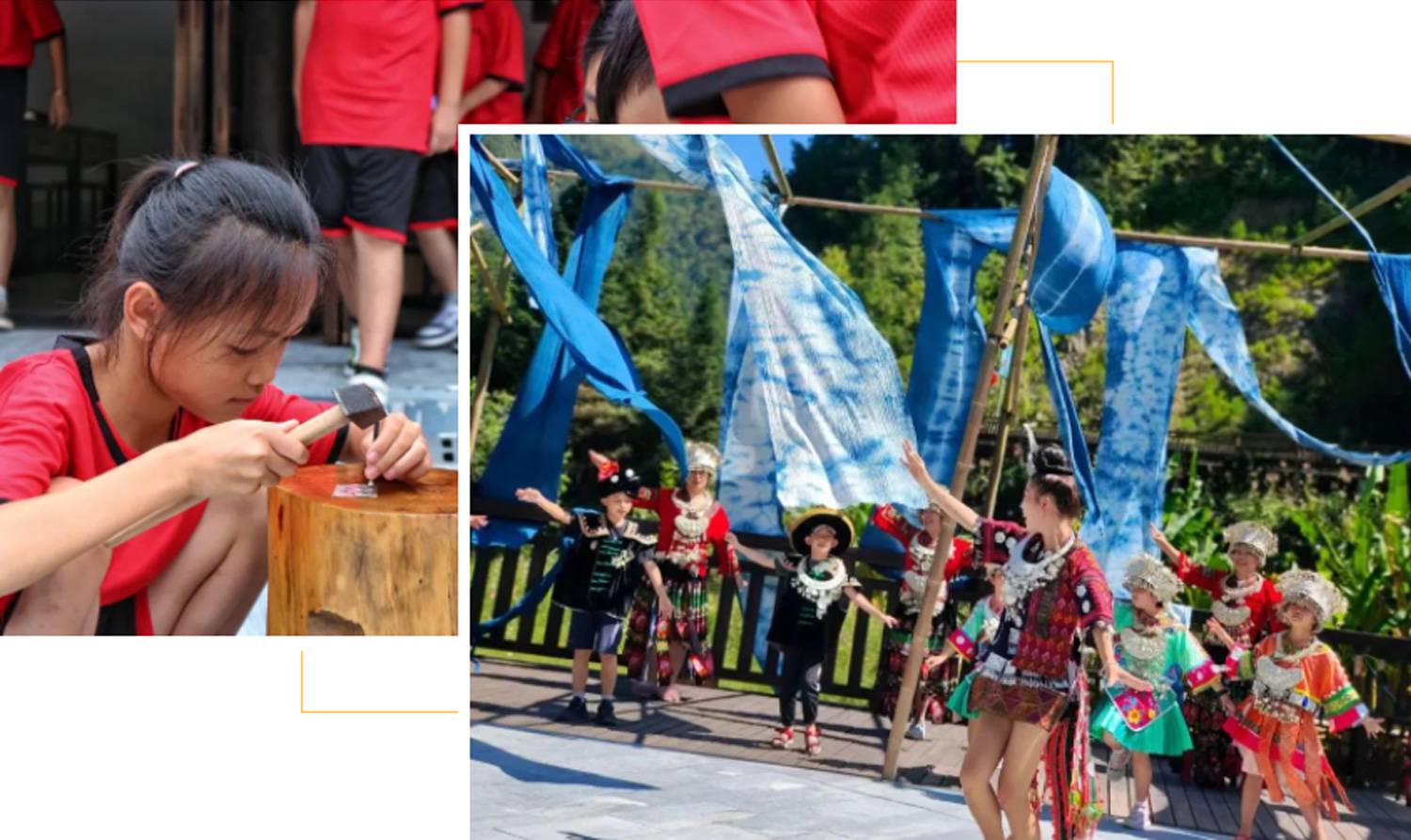 如今,郎德苗寨依托特有的资源优势,全面打造出了郎德研学基地,游客可体验蜡染、刺绣、古法造纸及苗族服饰等项目。