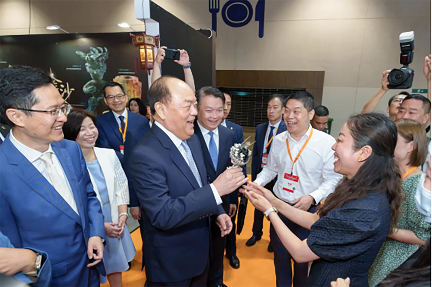 澳门特别行政区行政长官贺一诚、澳门特别行政区政府经济财政司司长李伟农、文化和旅游部国际交流与合作局(港澳台办公室)副局长孔伦等领导参观了贵州馆,并对贵州文创产品的创意性和地方特色给予了高度评价。