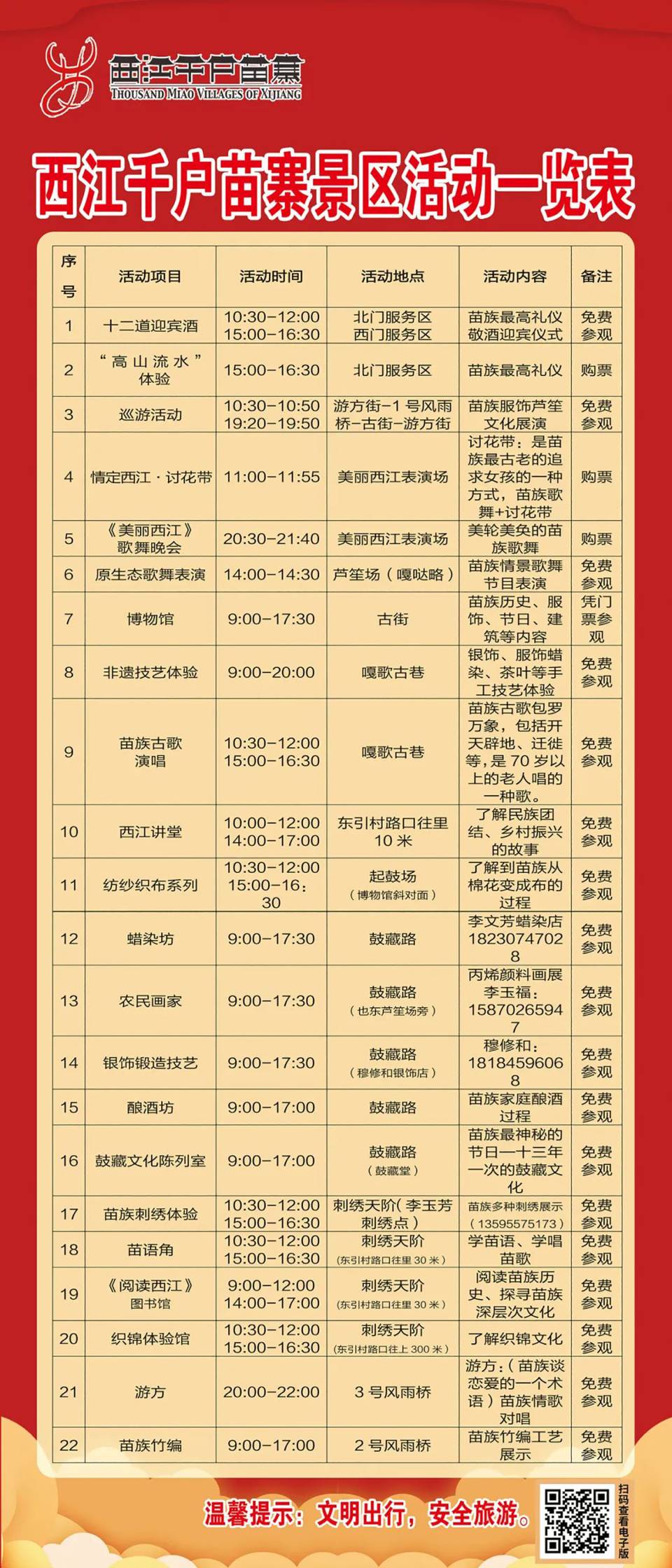 西江千户苗寨民俗文化活动一览表