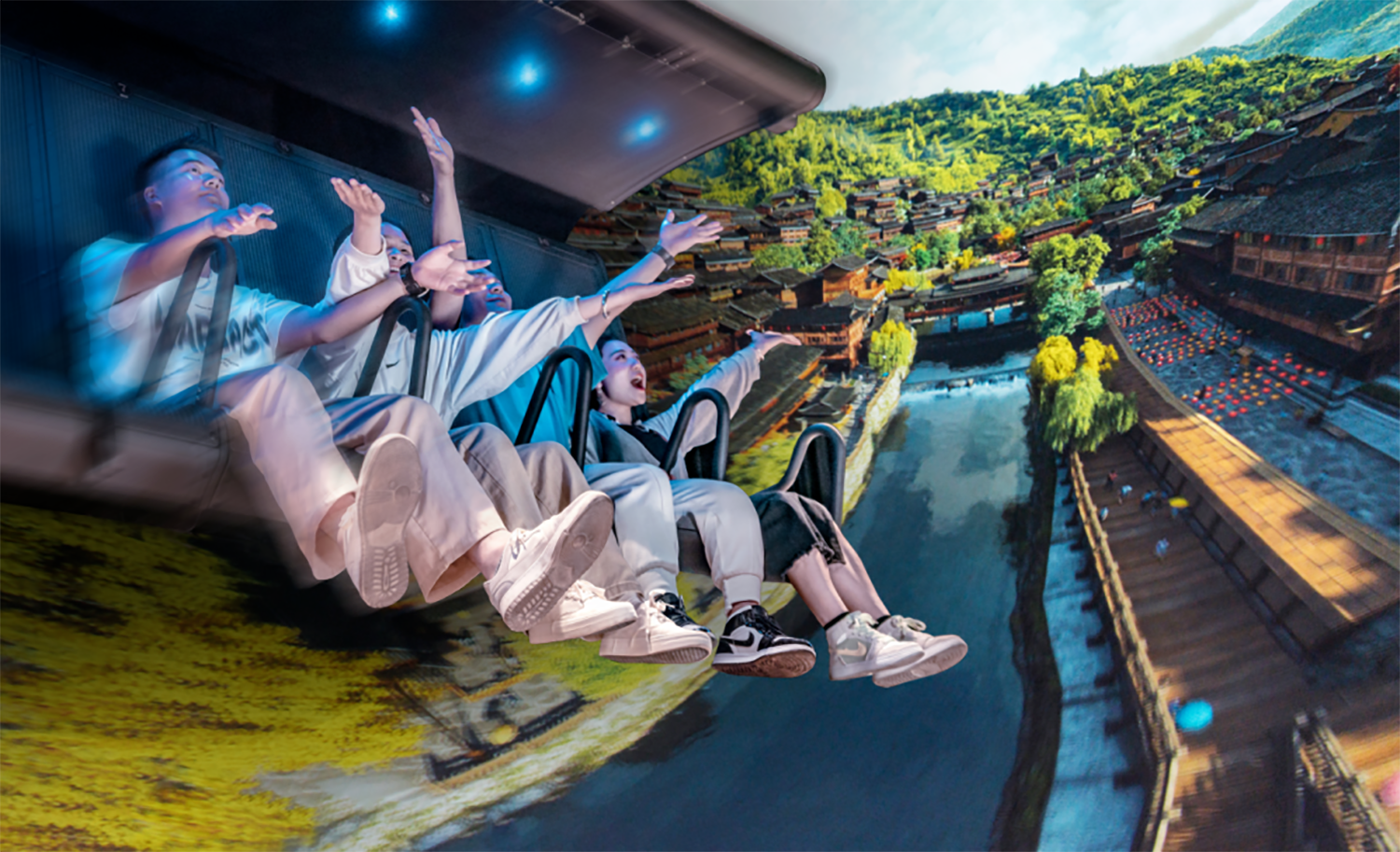 将飞行与观影相结合,犹如升级版的电影院,裸眼就能体验6D影片效果