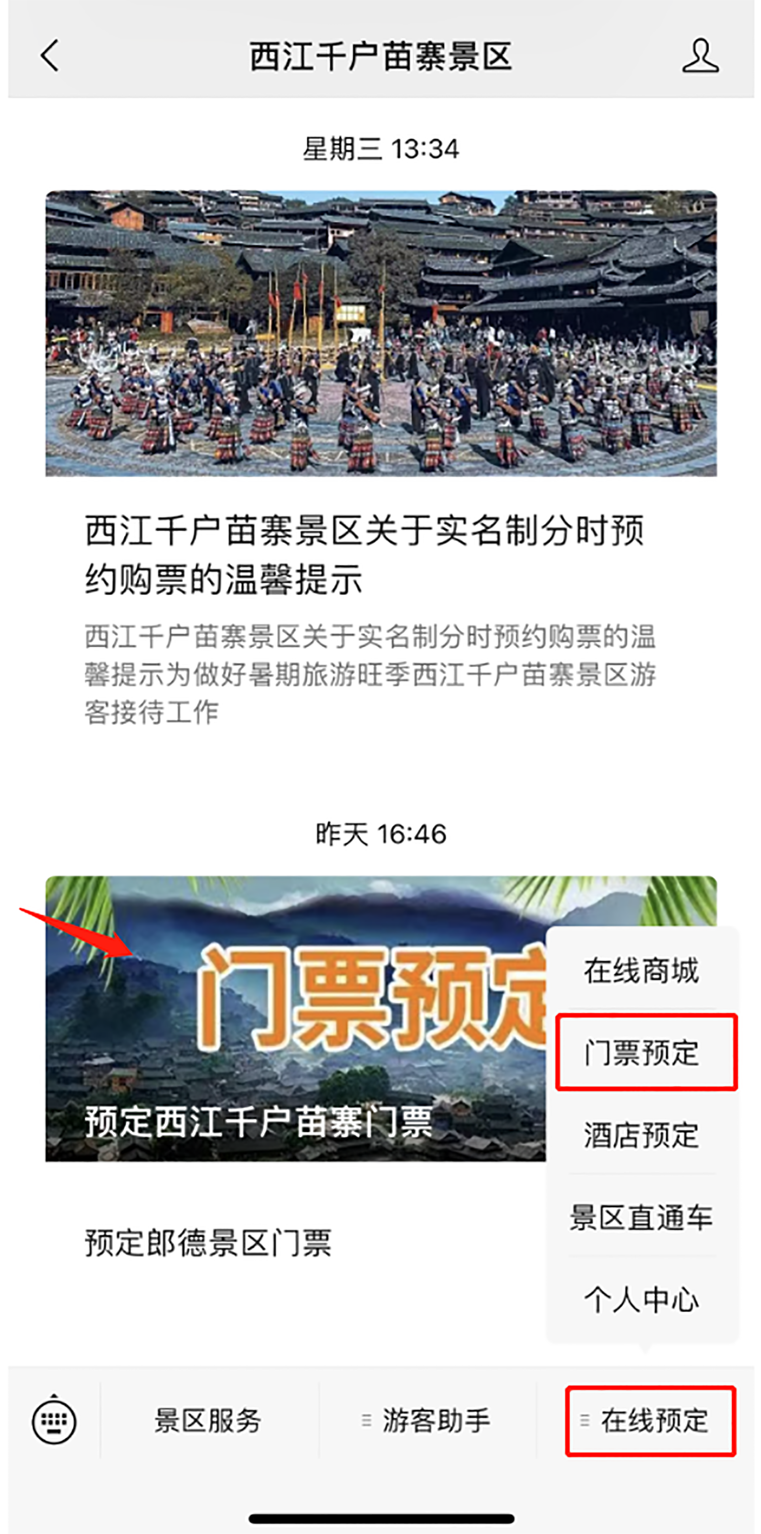 游客可在西江千户苗寨景区微信公众号、西江景区官方网站、一码游贵州及携程OTA等渠道进行实名预约购票。