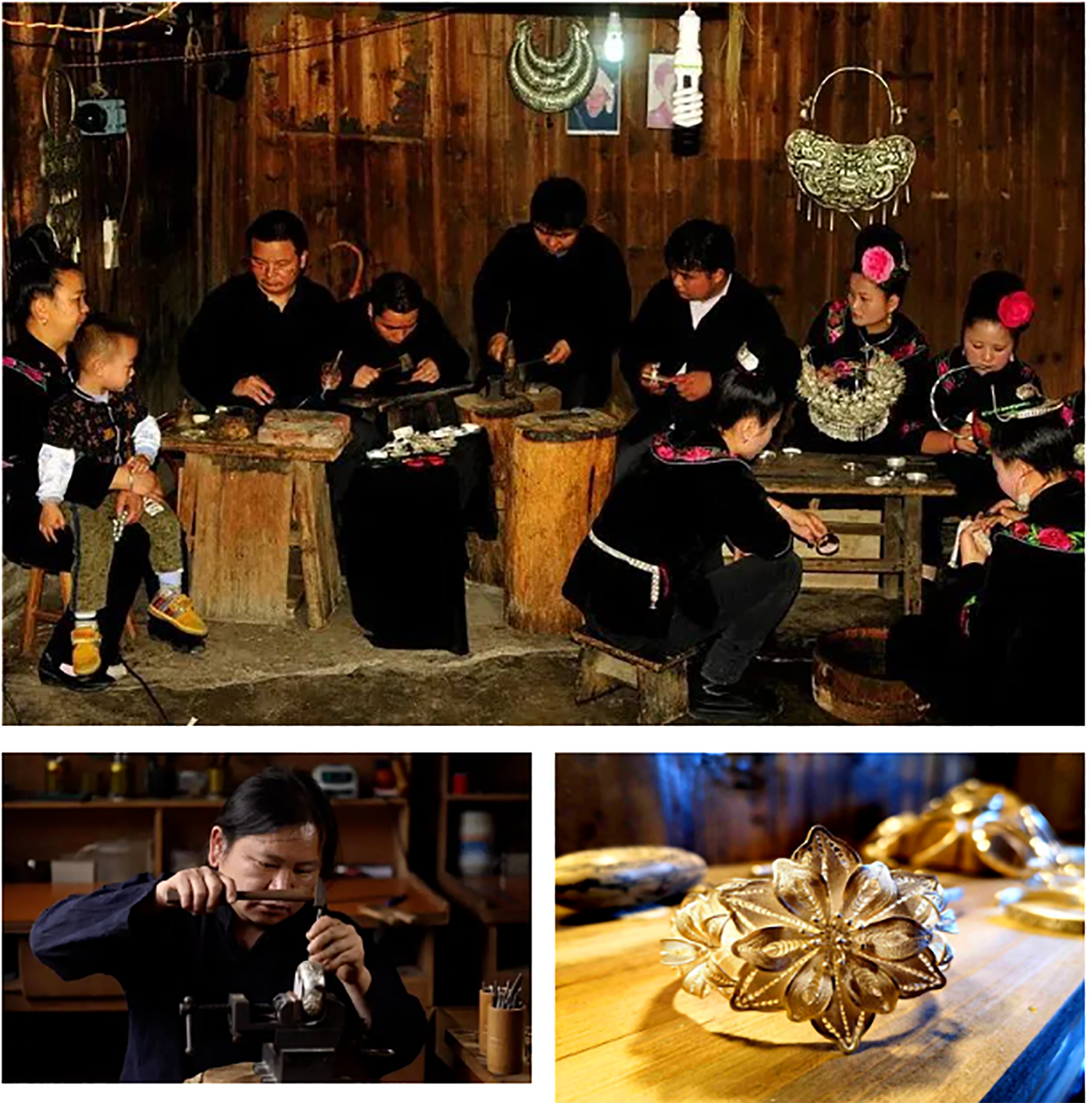 控拜村,是贵州黔东南州雷山县的一个苗族村寨,离西江镇14公里,到自治州府凯里41公里。控拜村北与雷山县麻料村接壤,一层层错落有致的梯田,薄雾环绕,青烟升腾,远处翠绿的杉木林在阳光下熠熠发光,美不胜收。控拜苗寨拥有精湛的苗族银饰锻造技艺,子承父业,代代相传,形成了独特的苗族银饰锻造村落集体手上记忆。因此,控拜村被称为“中国银饰艺术之乡”。