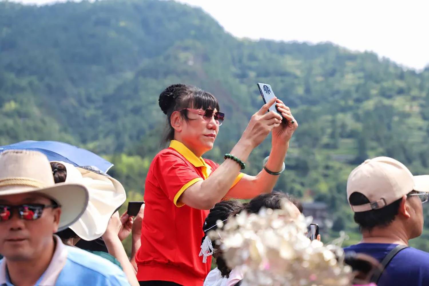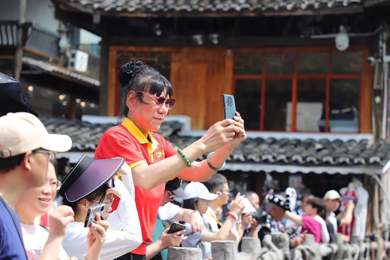 悦耳的芦笙声、轻盈的舞步、婉转动听的苗歌……在景区门口的广场上,热情的苗家人以隆重的迎宾礼仪迎接远方的客人。随后,郑海霞老师一行参观了苗族吊脚楼建筑群、风雨桥、古街等热门景点,沿途不禁纷纷拿起手机拍摄,定格这里的青山绿水,记录这里的淳朴民风。