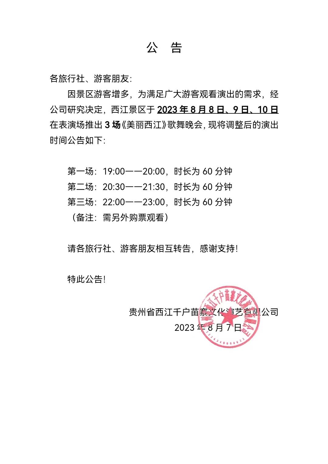 2023年8月8日、9日、10日《美丽西江》歌舞晚会演出场次