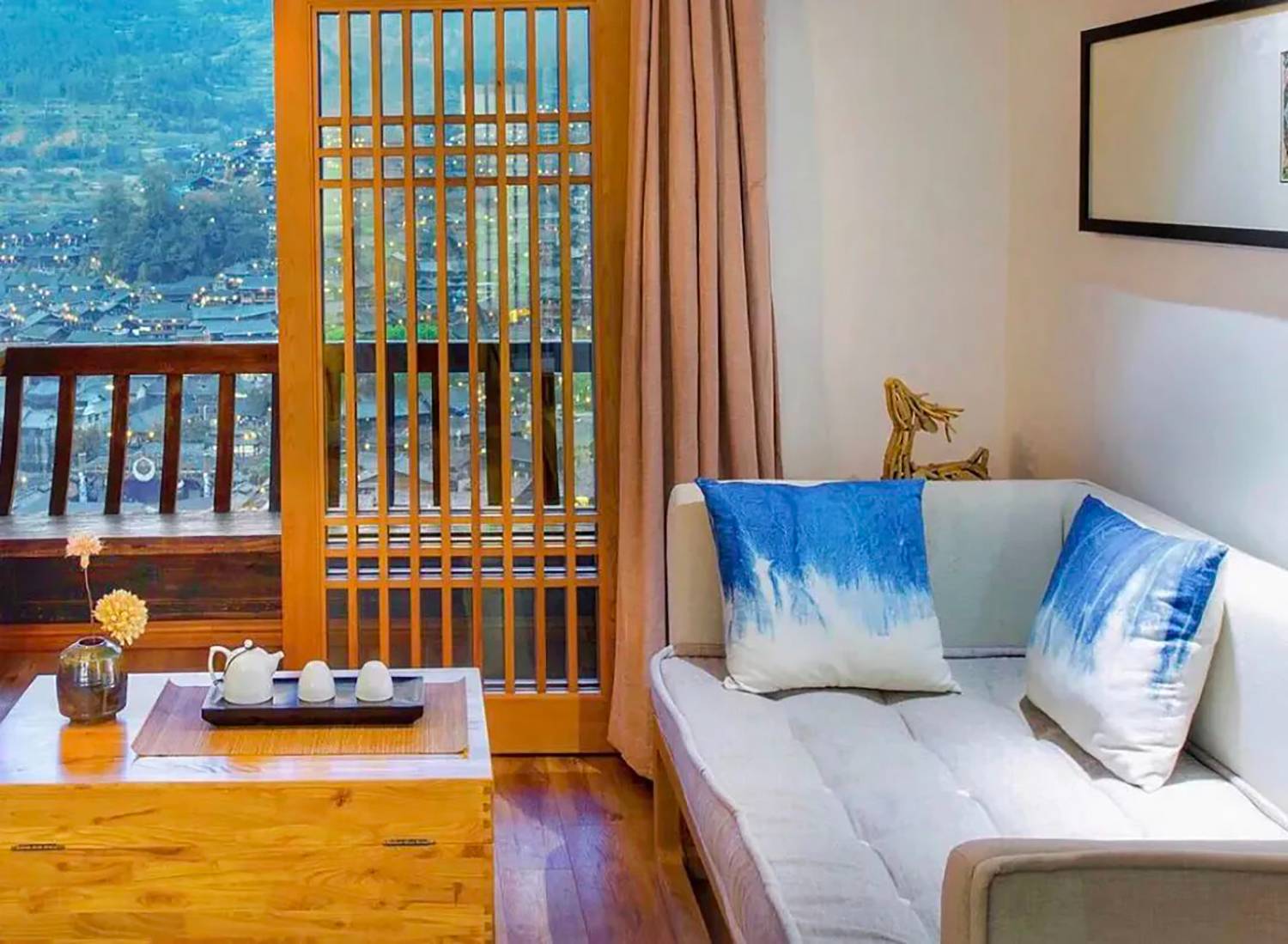 西江循美·半山度假酒店紧邻主干道,设计古朴,装点温馨,在舒适雅静的空间里融入苗乡文化,陶艺师手制茶具,苗族手工草木染床品,经典新中式实木家居,苗绣特色走廊,让您在享受精致的同时感受民族魅力,尽享西江度假时光。