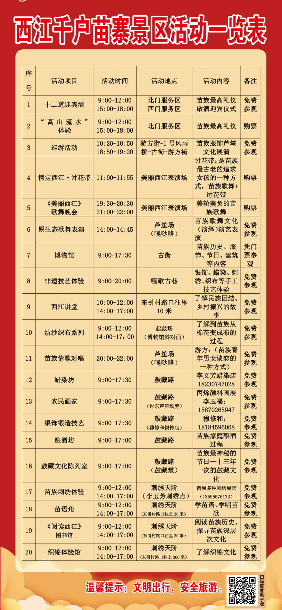 西江千户苗寨民俗文化活动一览表