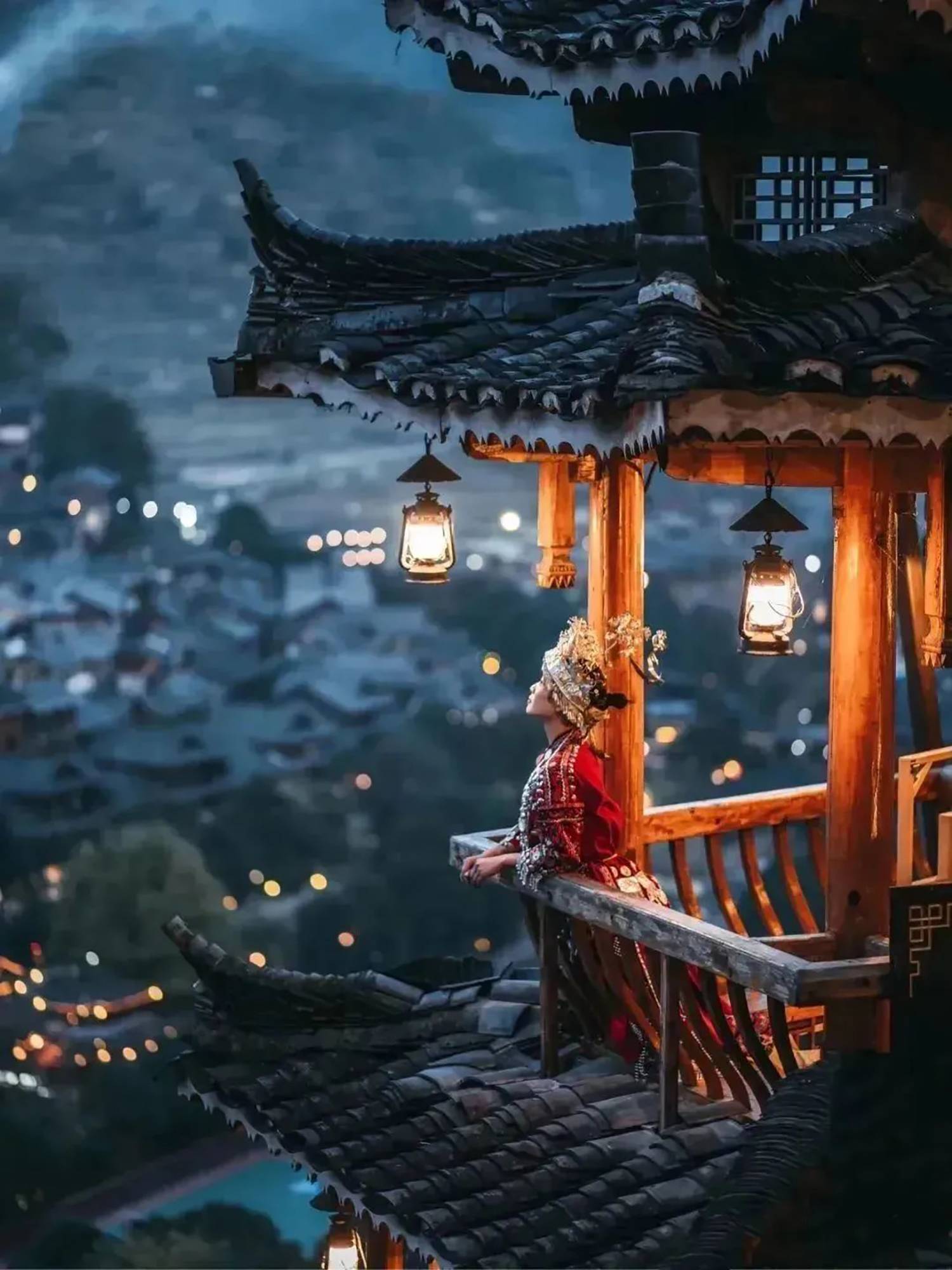 地址:贵州省黔东南州雷山县西江千户苗寨观景台上行100米右侧路口进入