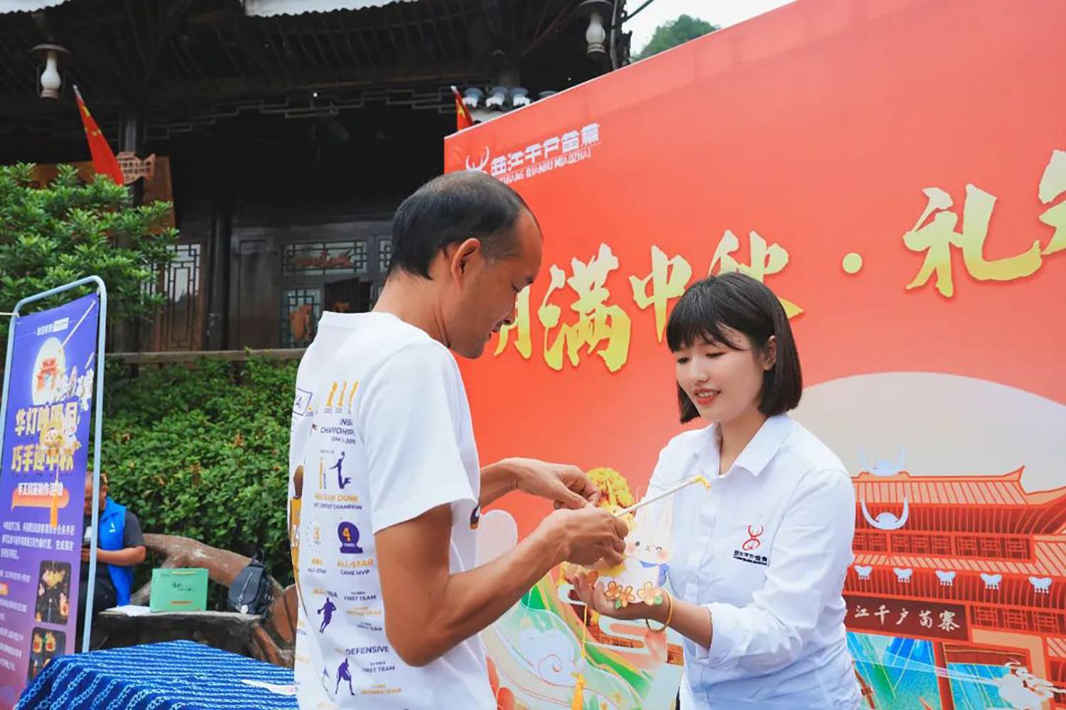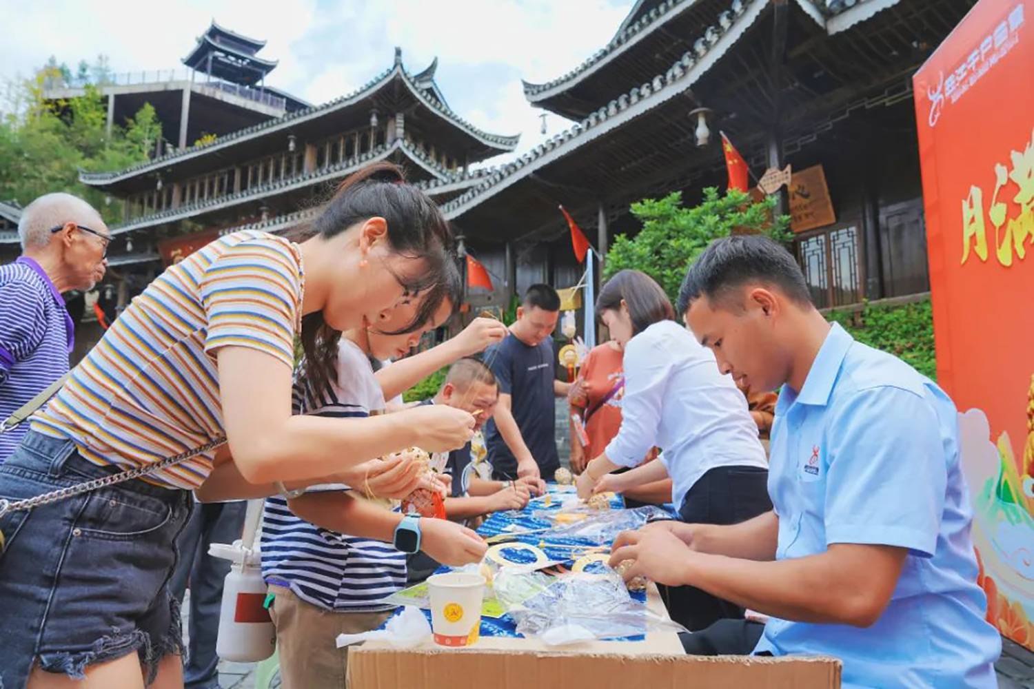 除了精美的自制竹编灯笼,西江千户苗寨里热情美丽的苗家阿妹们还给游客们免费送上了景区中秋定制月饼,让游客在好山好水、美人美酒中尽享苗族风情魅力,感受浓厚假日氛围。
