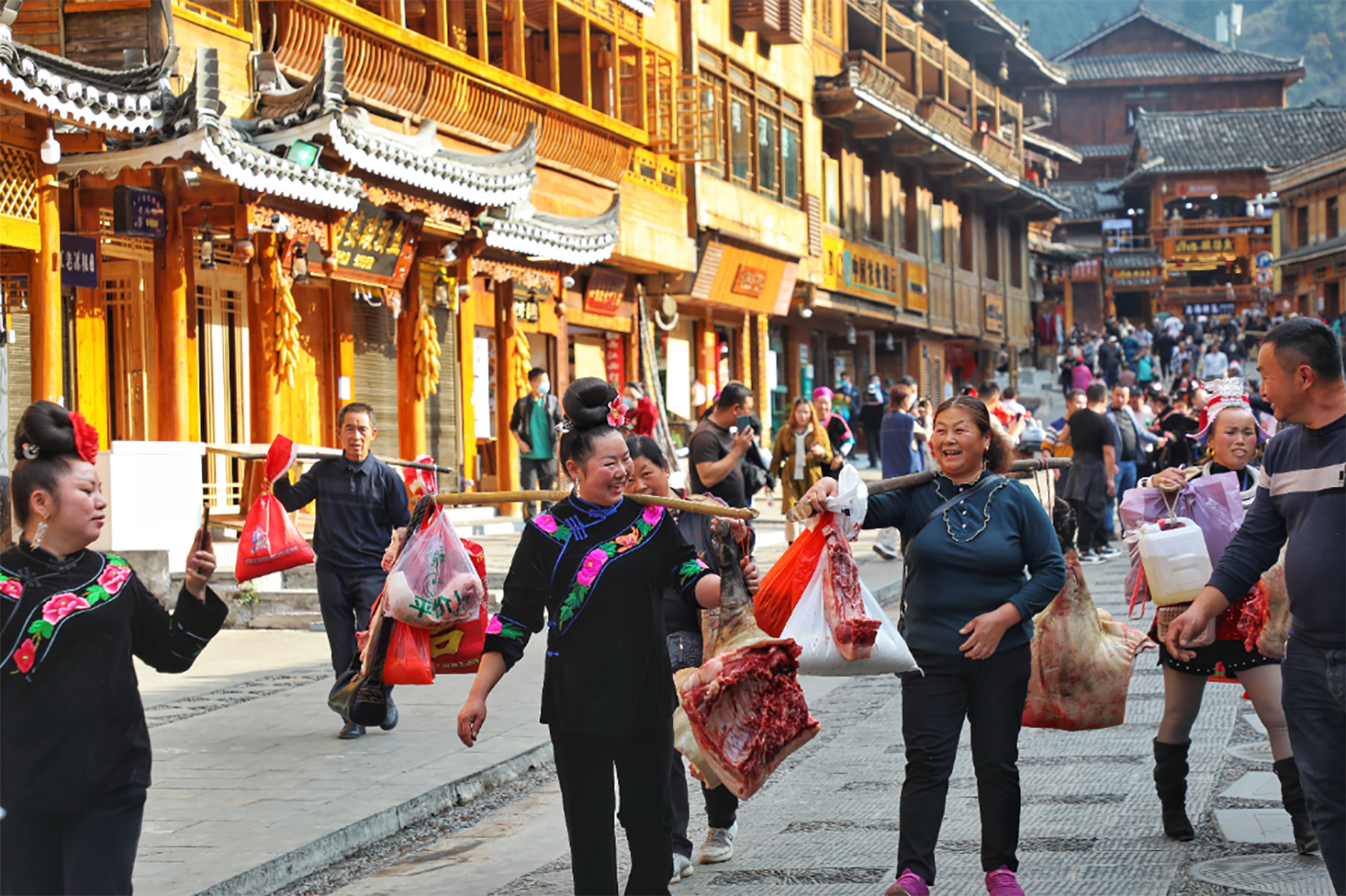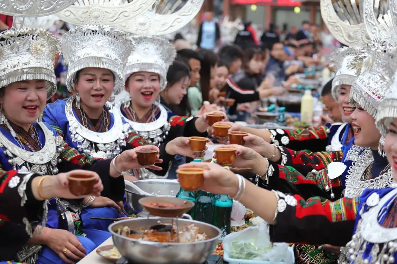 鼓藏节、苗年节期间,各家各户鞭炮齐鸣,亲朋之间,你来我往;大家饮酒、吃饭、对歌、敲铜鼓、跳芦笙,各个苗寨都洋溢一片欢乐祥和的节日气氛。欢迎广大游客前来游玩,沉浸感受苗族文化魅力!