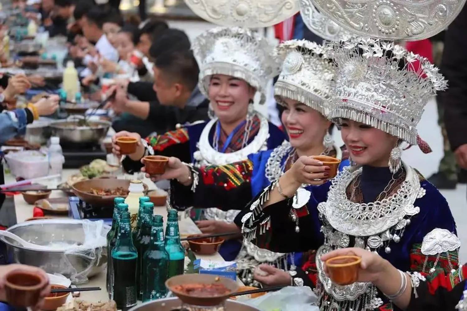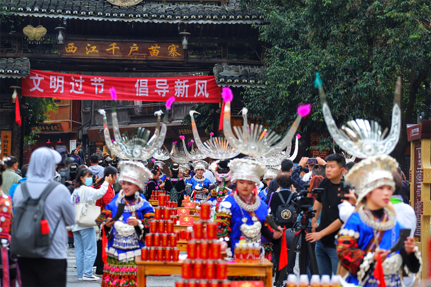 图为 苗族鼓藏节·十二道拦门酒习俗