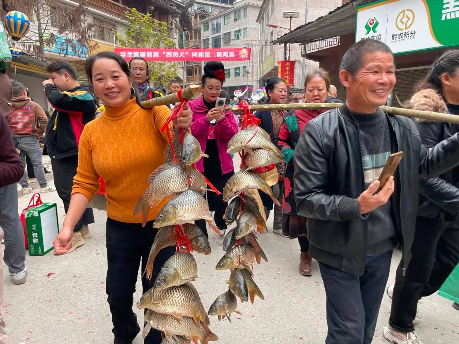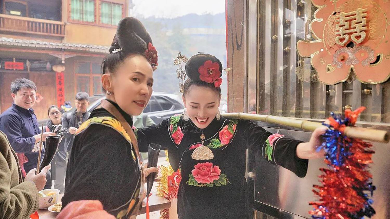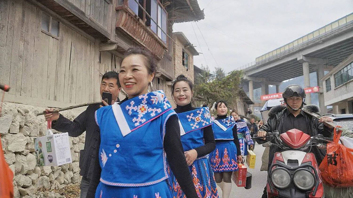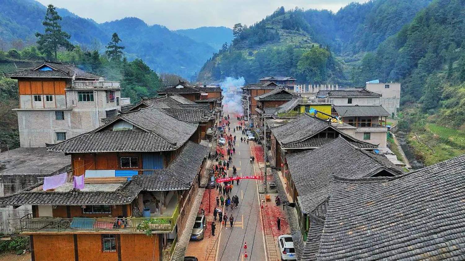 随着天色渐暗,主人家与前来做客的亲朋好友相聚一堂,共同享用苗家特色美食。过节期间,苗寨里欢声笑语不断,人人脸上满是掩饰不住的激动和兴奋。