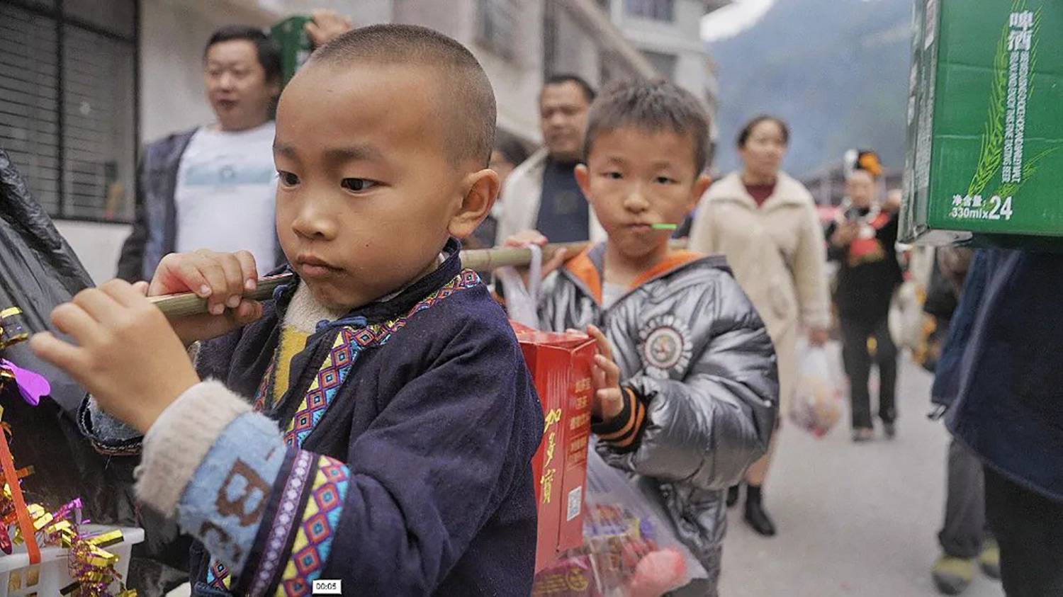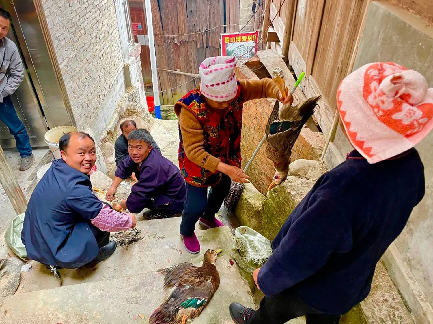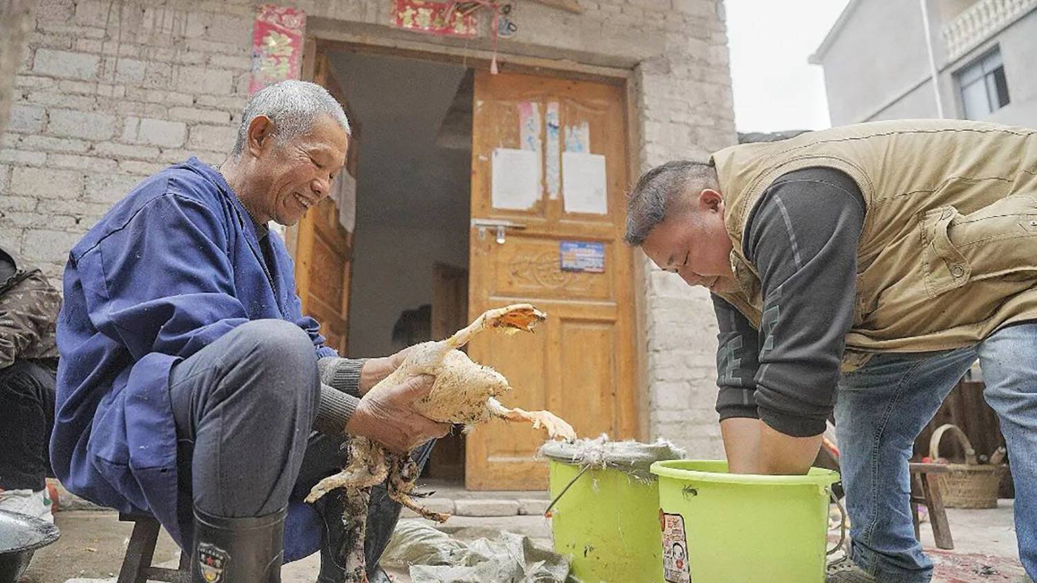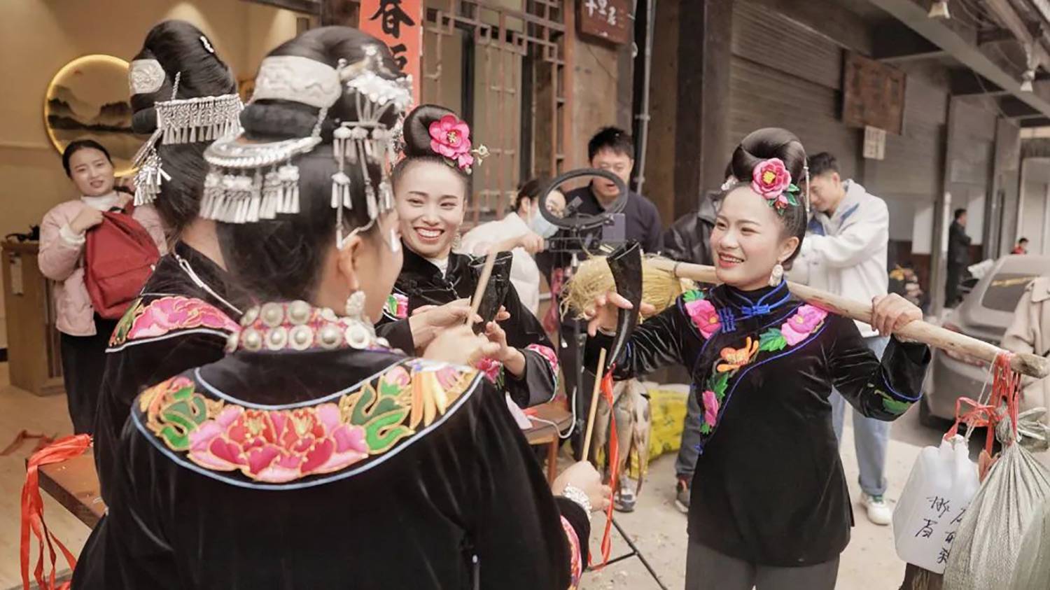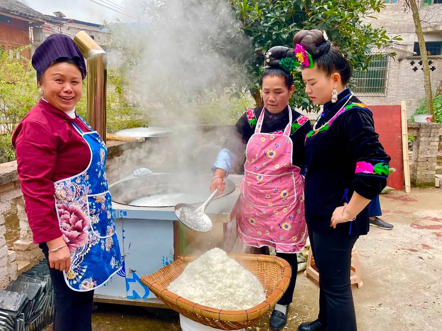 随着天色渐暗,主人家与前来做客的亲朋好友相聚一堂,共同享用苗家特色美食。过节期间,苗寨里欢声笑语不断,人人脸上满是掩饰不住的激动和兴奋。
