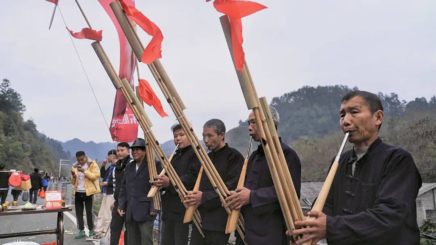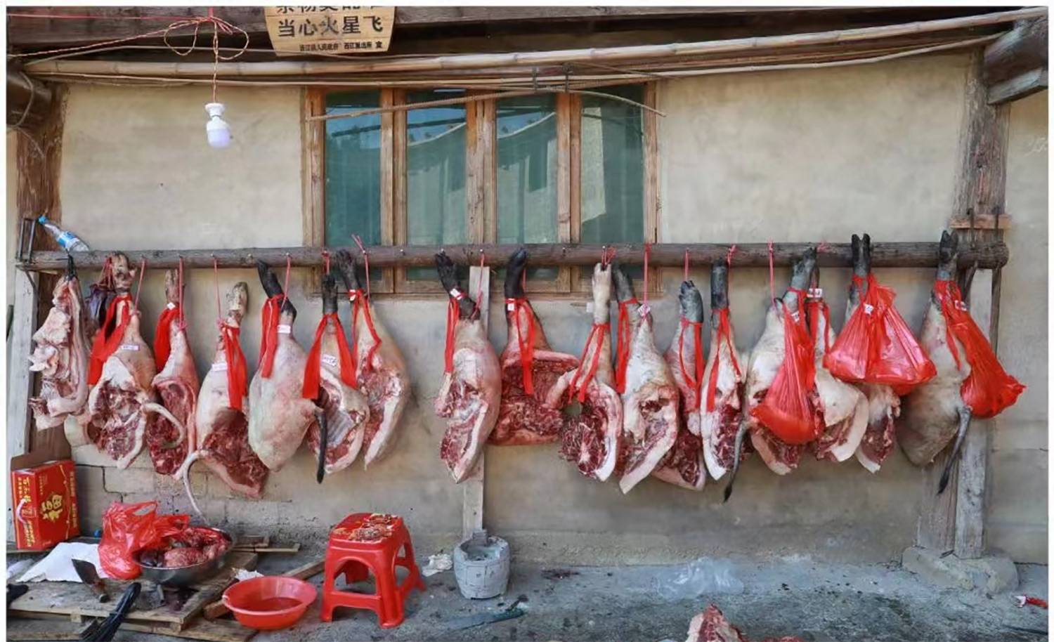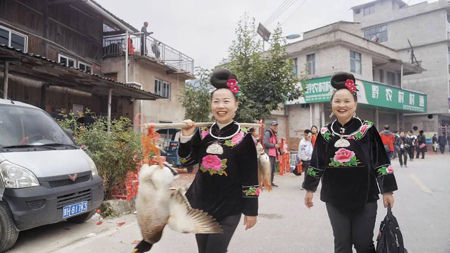 11月19日为西江镇黄里片区鼓藏节的送客日,这天主人家要送给客人回礼,而猪腿在这里则成为了凝聚亲戚情感的纽带,于是形成了鼓藏节“抬猪腿”的传统习俗。