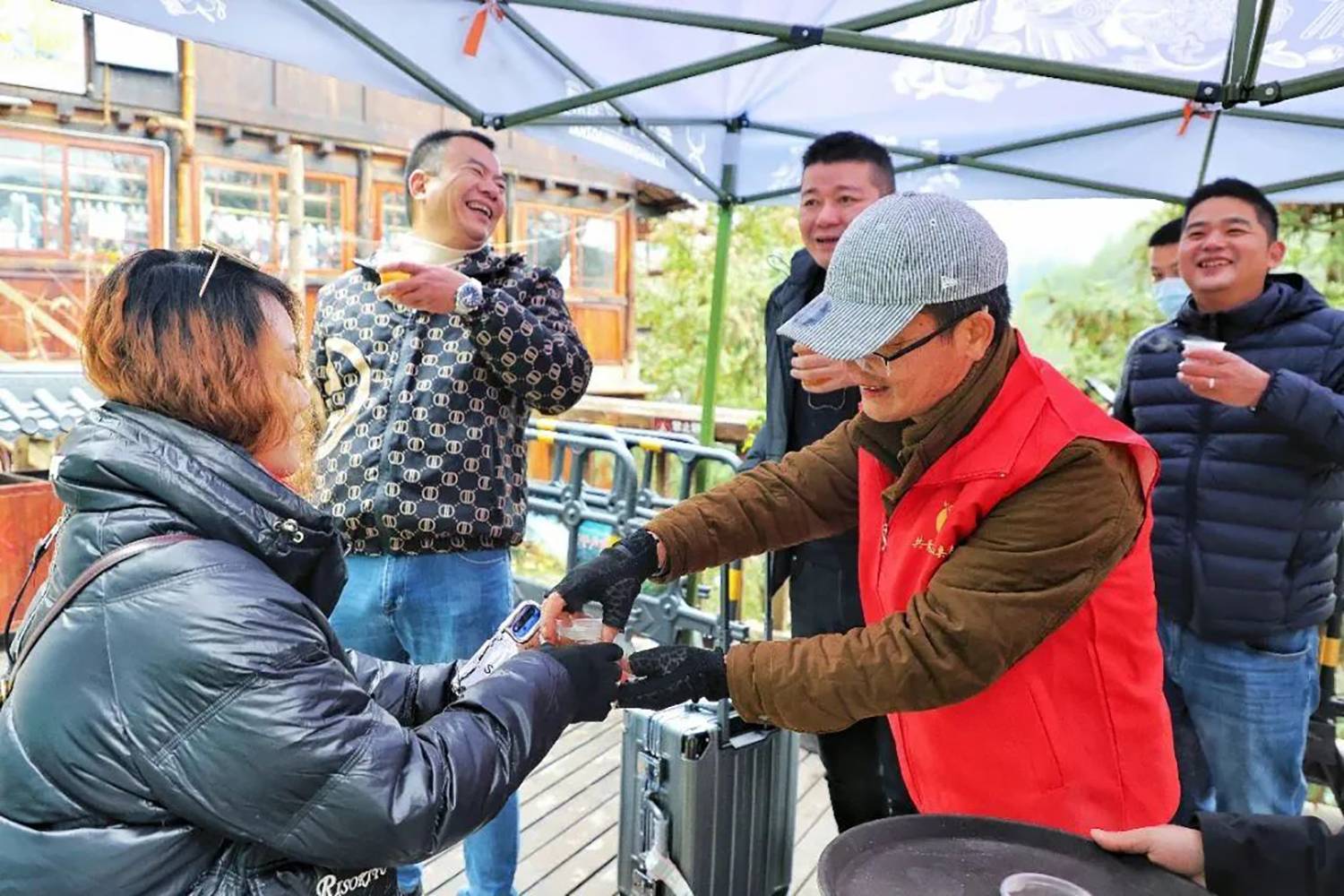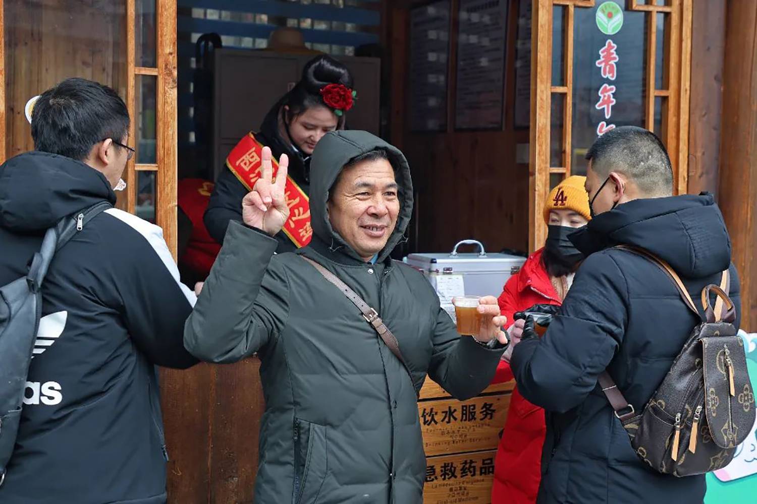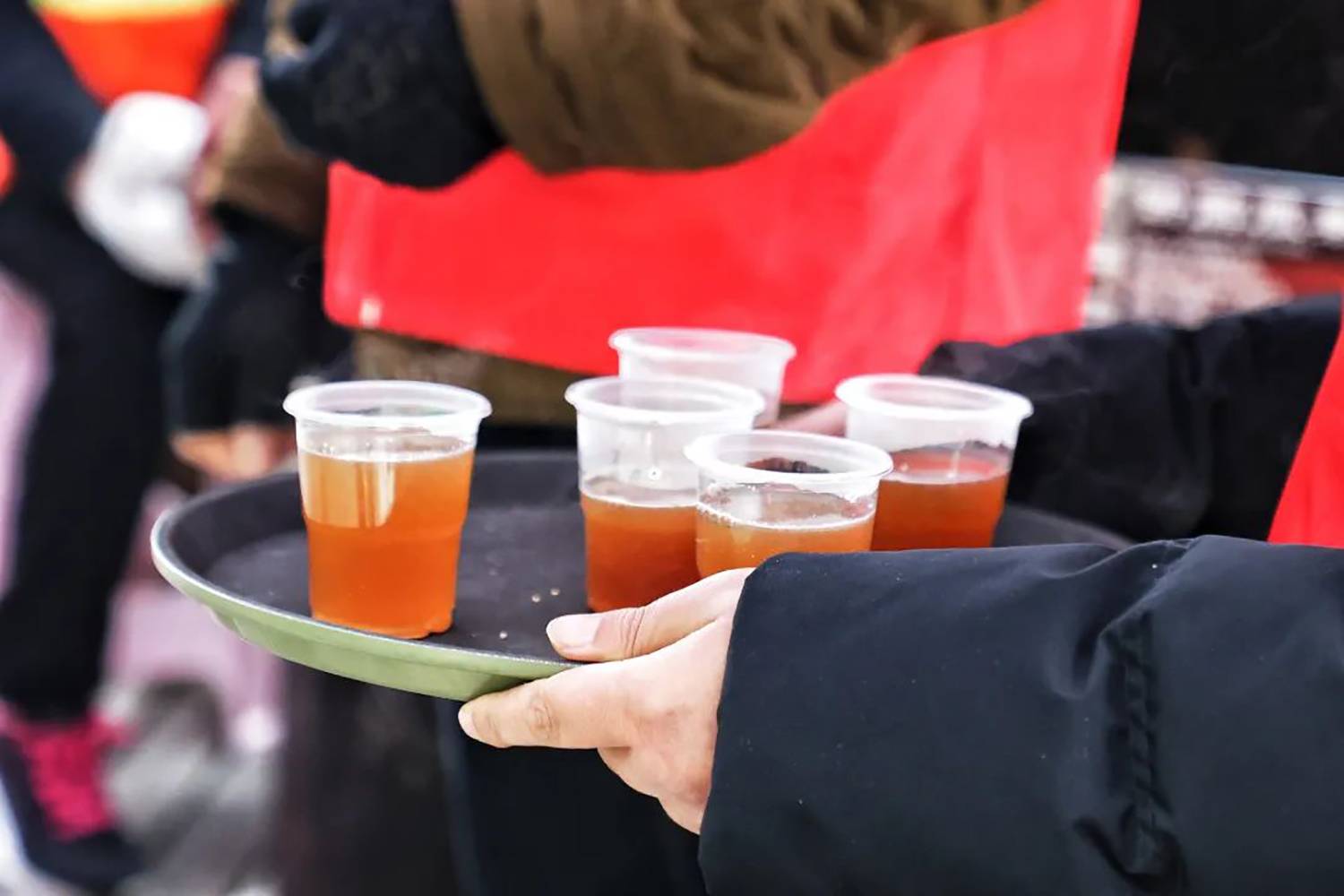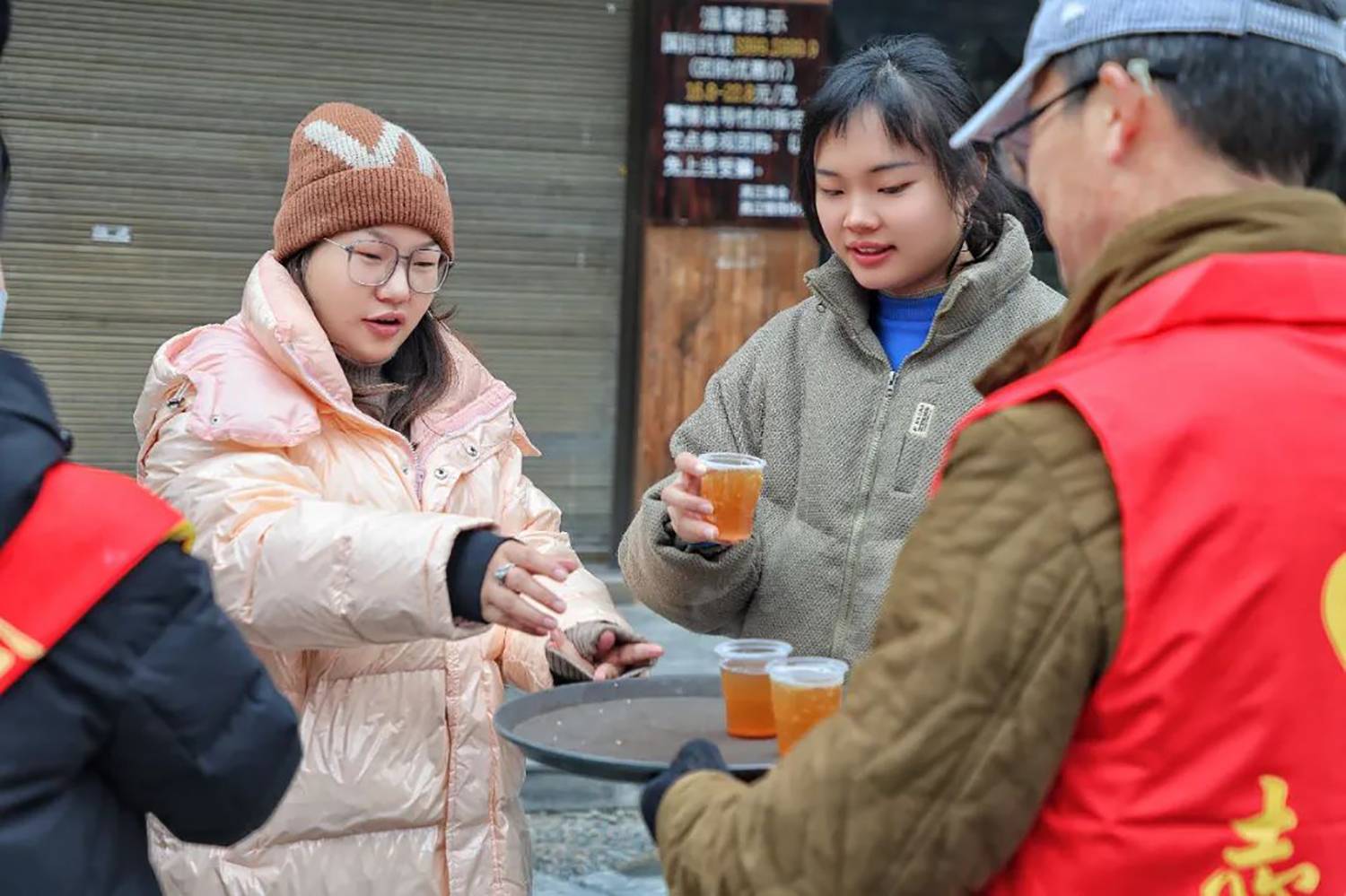 今年的冬天,气温总是“断崖式”下降,为保障游客出行安全,西江千户苗寨景区在游客服务中心、各咨询岗点及人流较多的地方设立了免费送热水、姜茶服务站,为游客免费送姜茶,给广大游客送去温暖,获得游客们的一致好评。