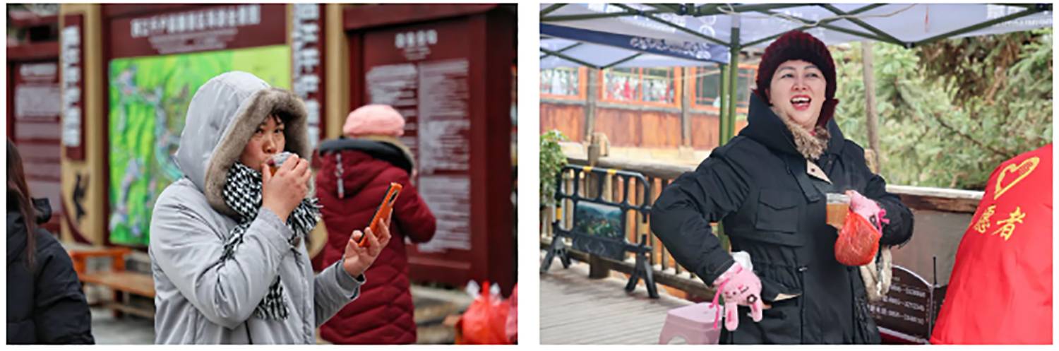 近日,受强冷空气影响,西江千户苗寨景区出现超强寒潮、雨雪凝冻天气。为积极应对严寒天气,西江千户苗寨景区各部门凝聚整合、齐心协力、共同协作,开展了“寒冬送姜茶”服务活动,让游客们在严寒的天气里感受到了关怀和温暖。