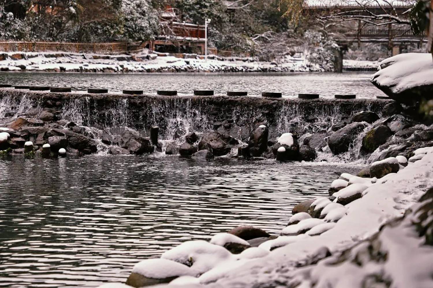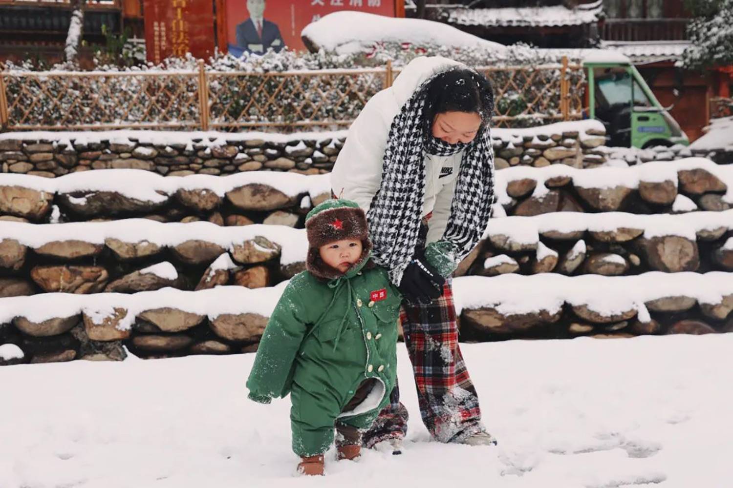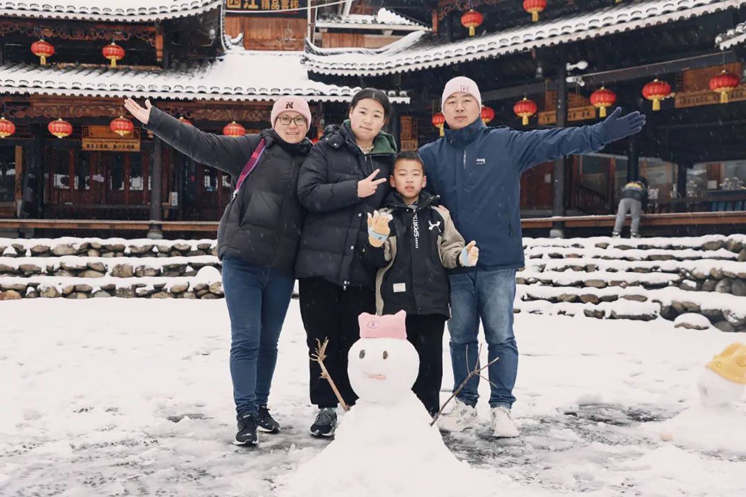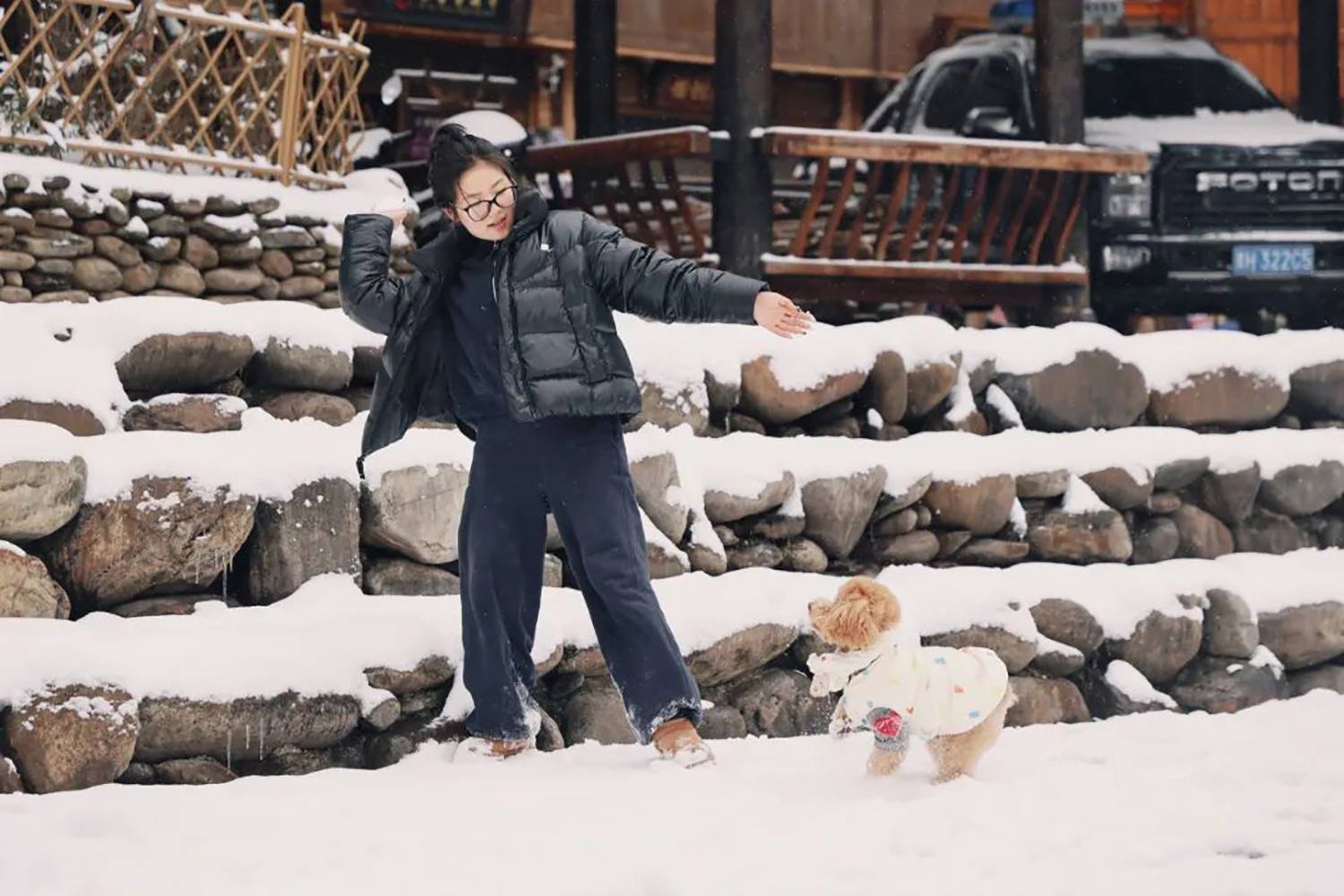 感受吊脚楼、风雨桥在斑驳雪影下的古韵,