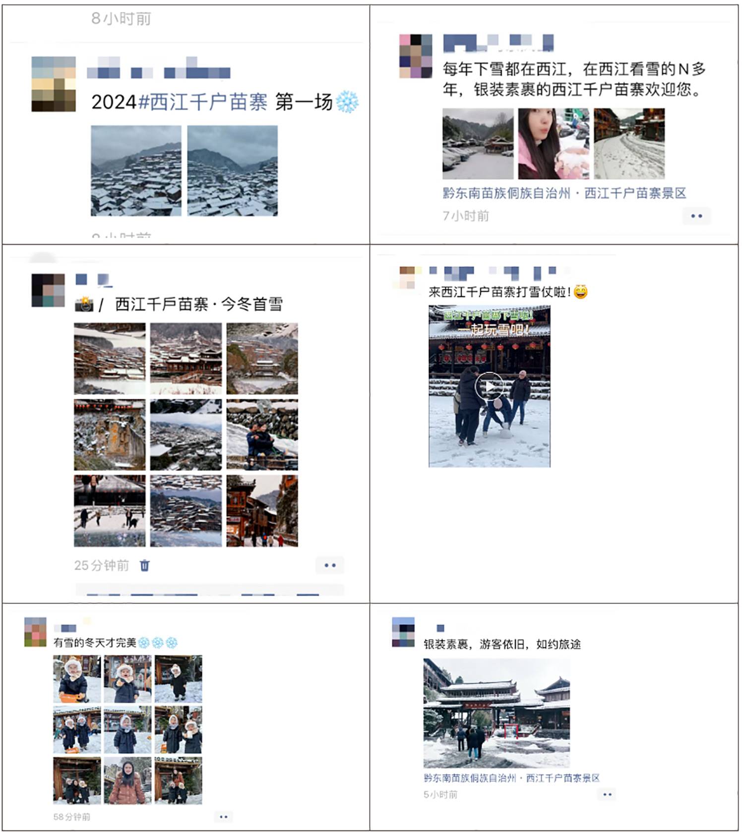纷纷在朋友圈刷屏分享苗寨雪景。