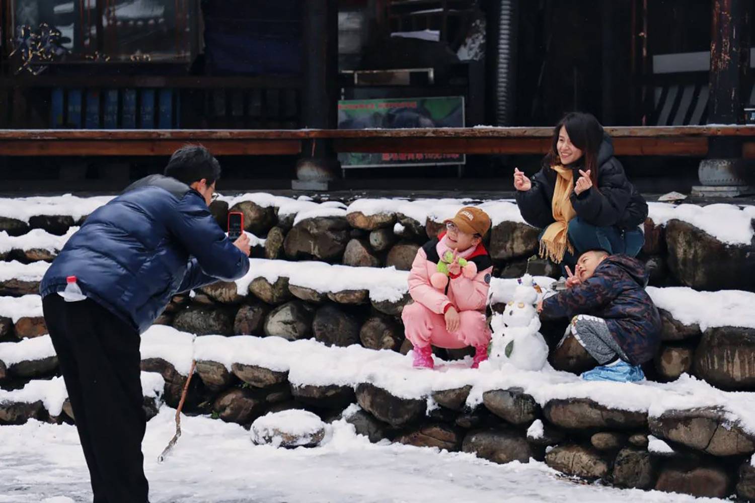 沉浸于大雪带来的喜悦之中。