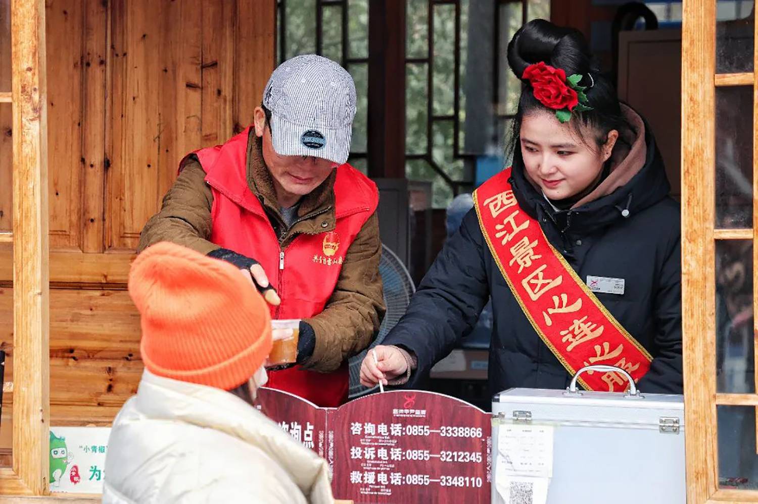 二、关于景区观光车及便民车运营服务:为保障游客安全,景区内道路积雪结冰时可能出现运营车辆暂时无法通行情况,请及时关注西江景区官方账号发布的相关信息。