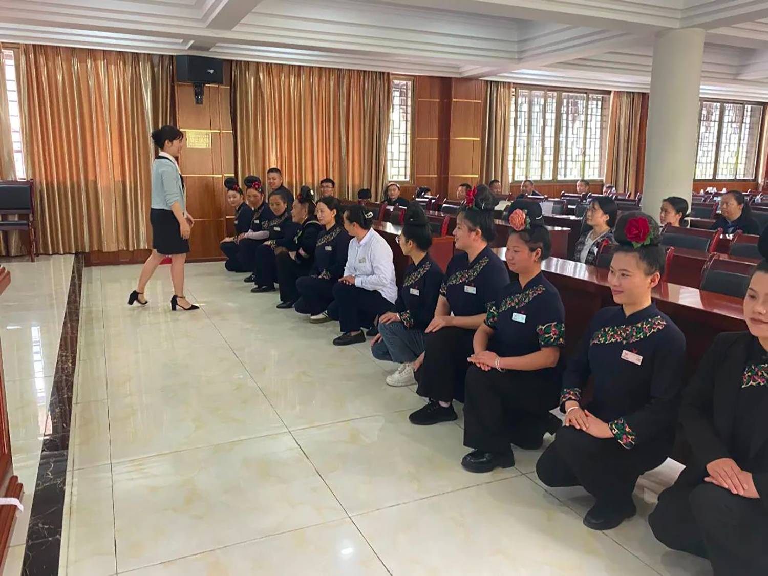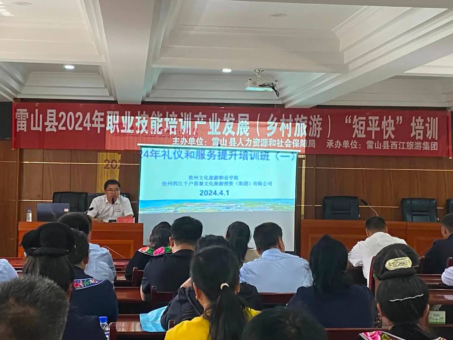2024年4月1日至3日,西江旅游集团联合雷山县人力资源和社会保障局共同开展一线职工服务技能质量提升培训会,培训共开展四期,参训人数累计300余人。此次培训会邀请到贵州旅游文化职业学院讲师孙金、何金芳两位老师授课,主要培训内容包括旅游服务沟通技巧与投诉受理、旅游接待服务礼仪和着装规范等,旨在进一步提升西江旅游集团职工服务技能和专业素养,打造成一支高素质、高效率、高执行力的团队,有效提升西江千户苗寨景区旅游接待和服务水平。