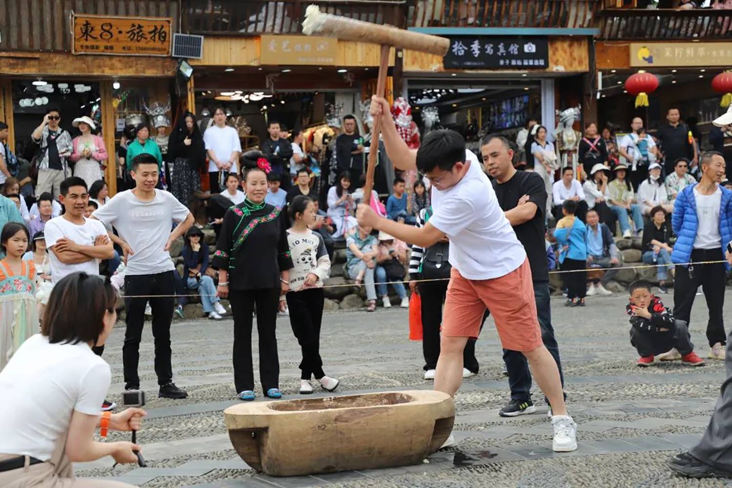 可免费体验打糍粑、吃糍粑,感受苗家美食的乐趣。