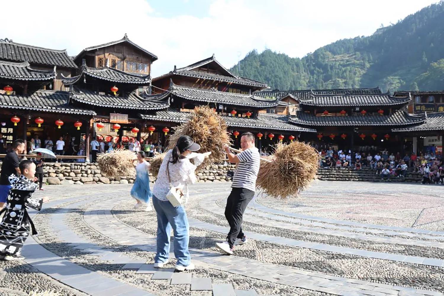 可免费参加挑稻草接力赛,体验苗族农耕文化,还有机会赢取小礼品。