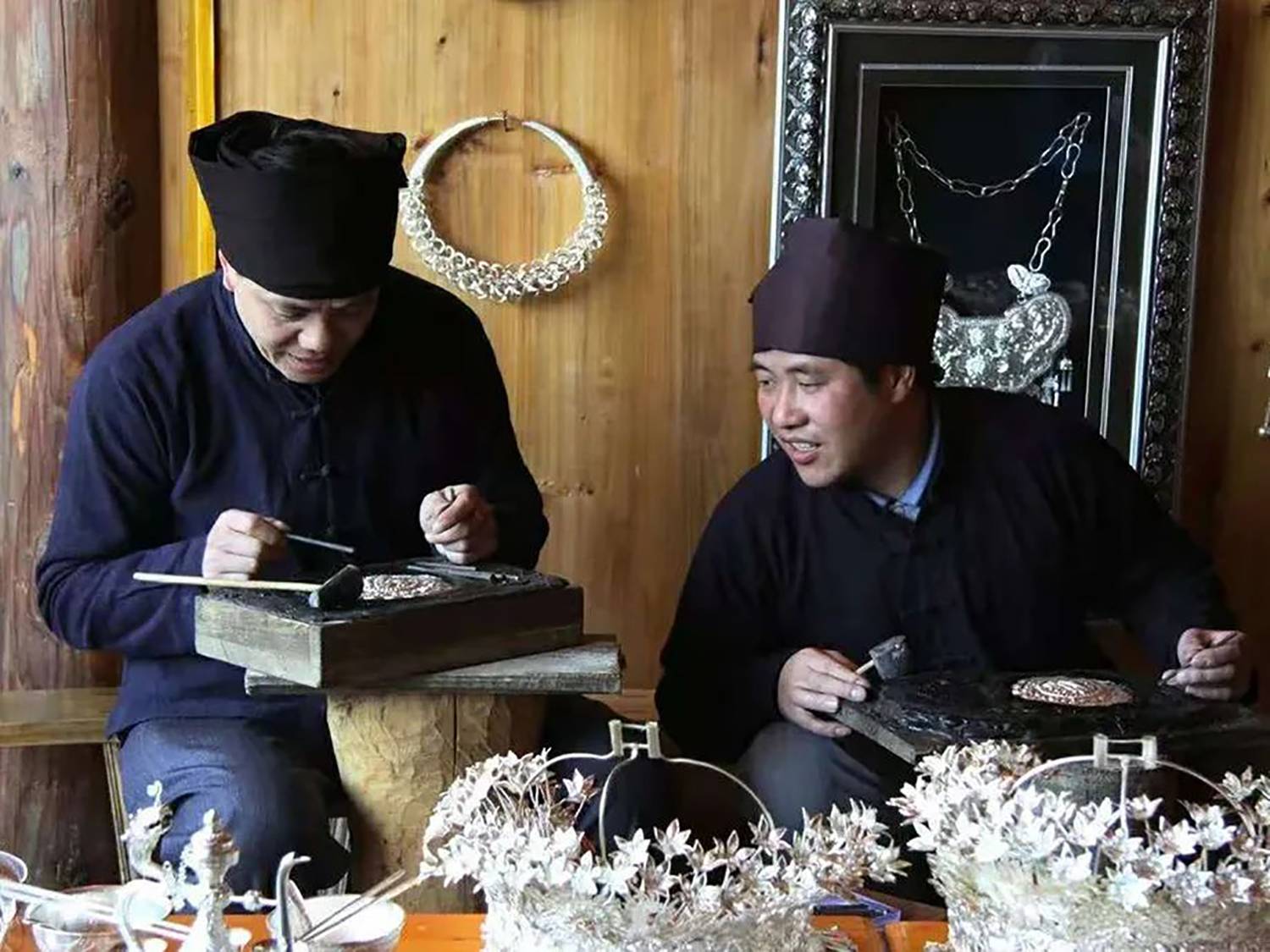 在嘎歌古巷里体验苗族蜡染、刺绣、银饰锻造等多项非遗技艺。