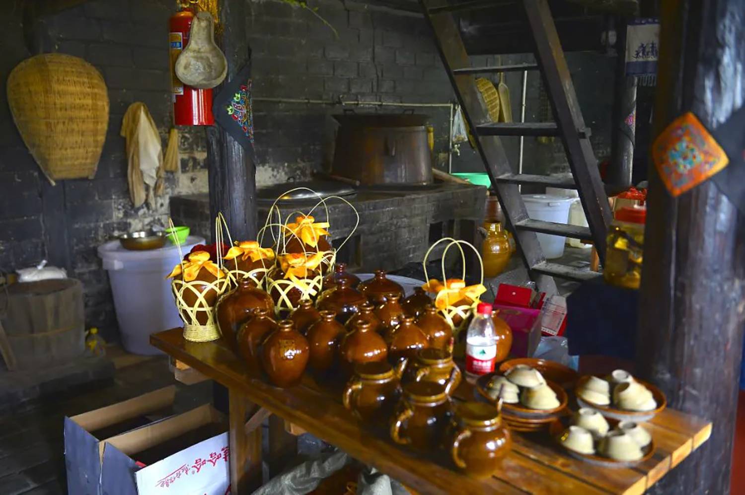 酿酒坊展示了苗家人酿酒的过程及各种酒器。
