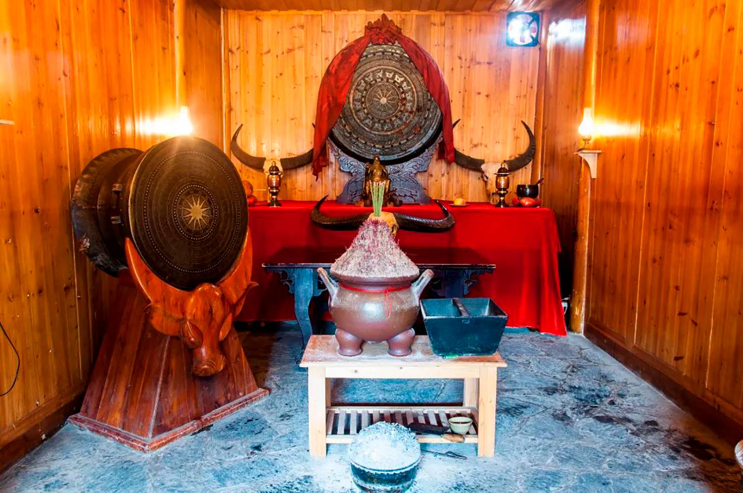 鼓藏文化陈列室展示着西江苗族十三年一次的鼓蔵节祭祀文化。