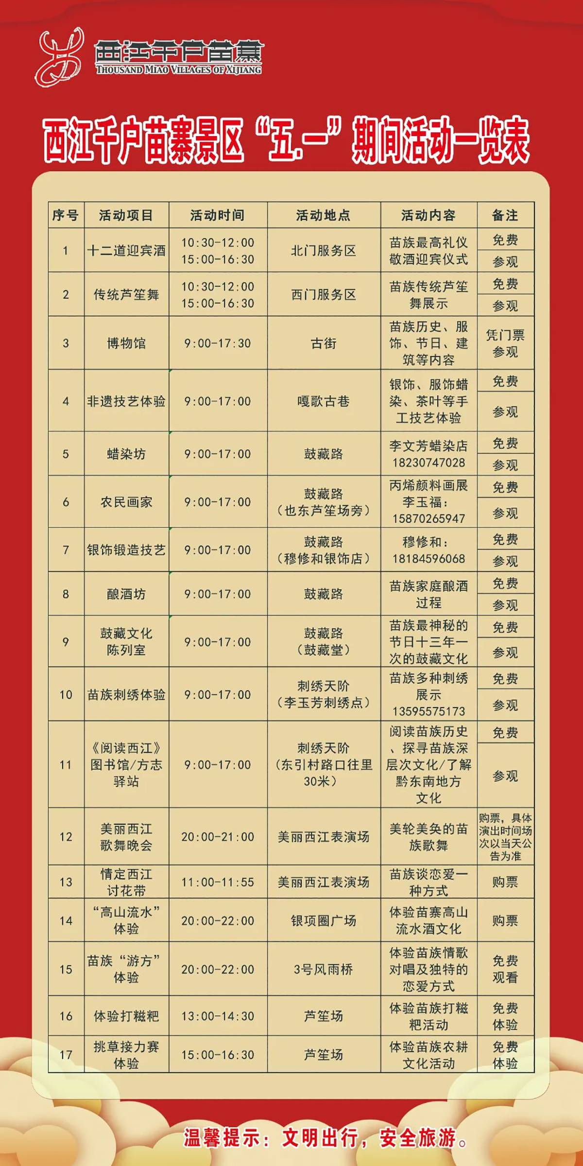 【 西江千户苗寨景区·五一精彩活动一览表 】