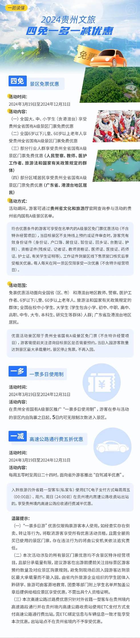 【 2024年贵州文旅“四免一多一减”优惠活动 】