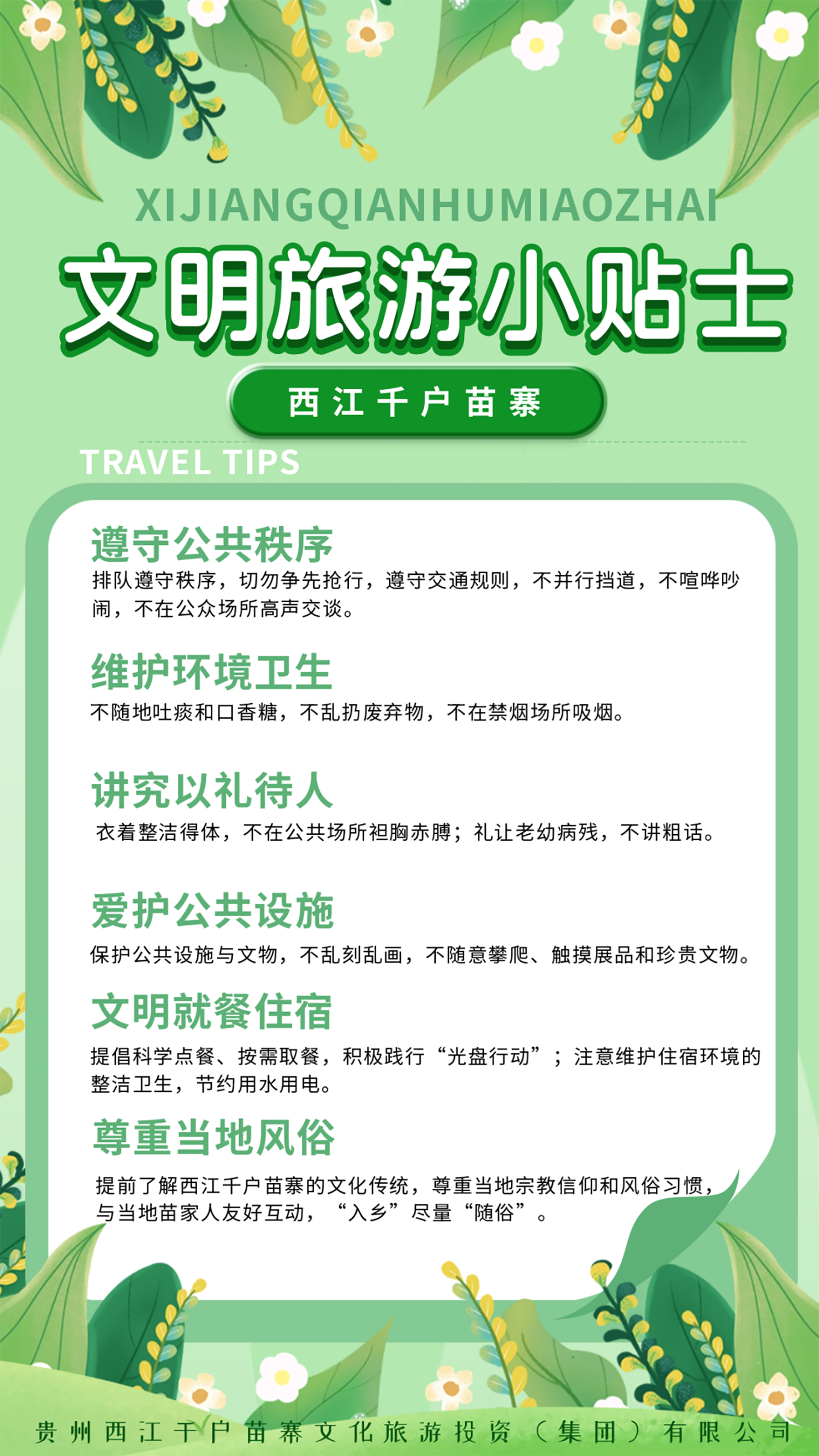 温馨提示:来到西江千户苗寨游玩的小伙伴们,在尽享人文美景的同时,也要时刻谨记文明旅游哦 ↓ ↓ ↓