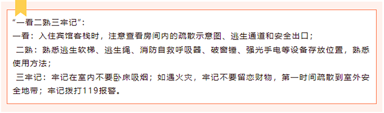 五、注意防火安全:由于苗寨吊脚木楼分布密集,天气干燥时极易发生火灾,游客朋友们请严格遵守景区消防安全管理规定,不在野外、易燃物聚集地或有防火提示的地方吸烟、烧烤或使用明火,谨记“一看二熟三牢记”,防止火灾事故发生。