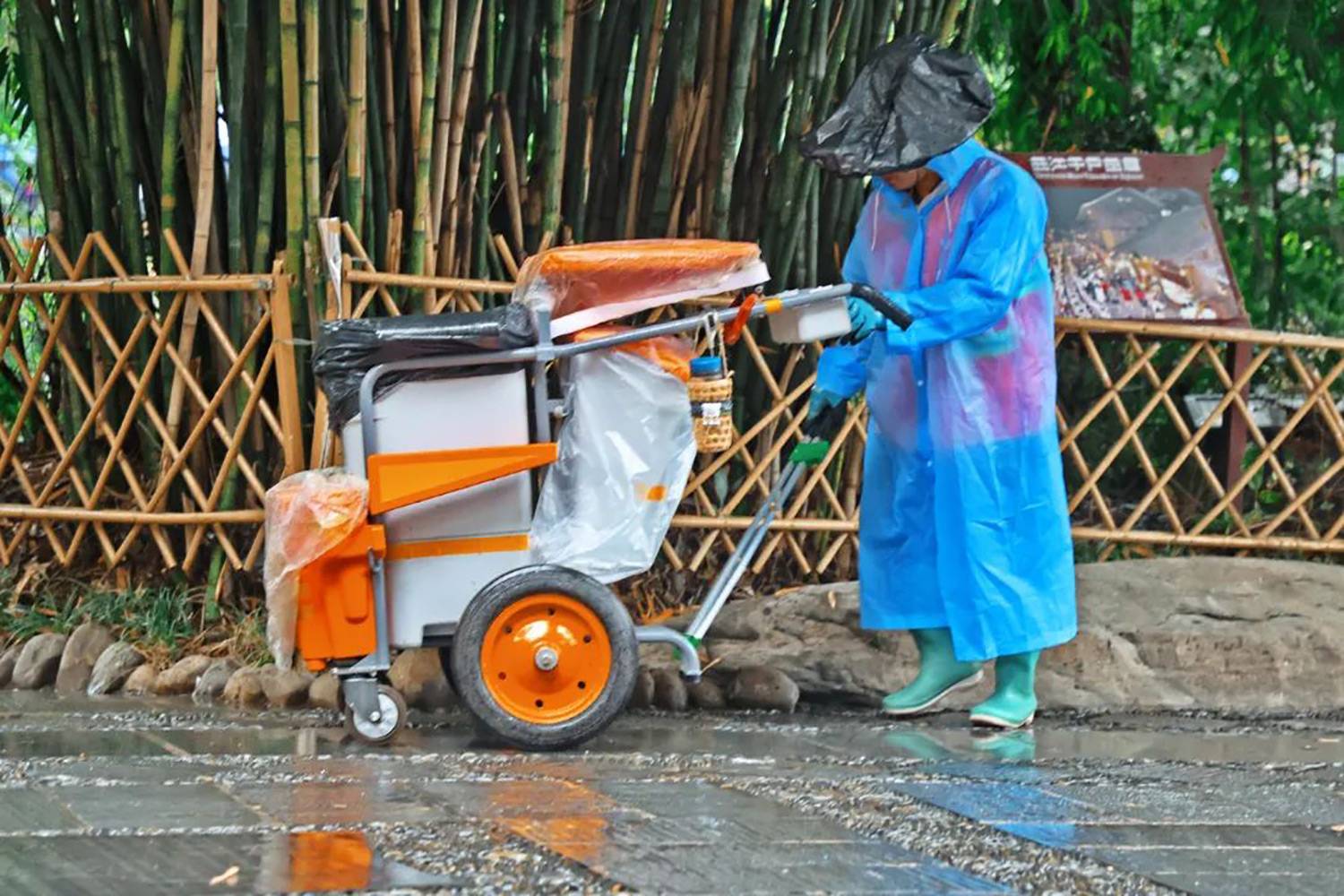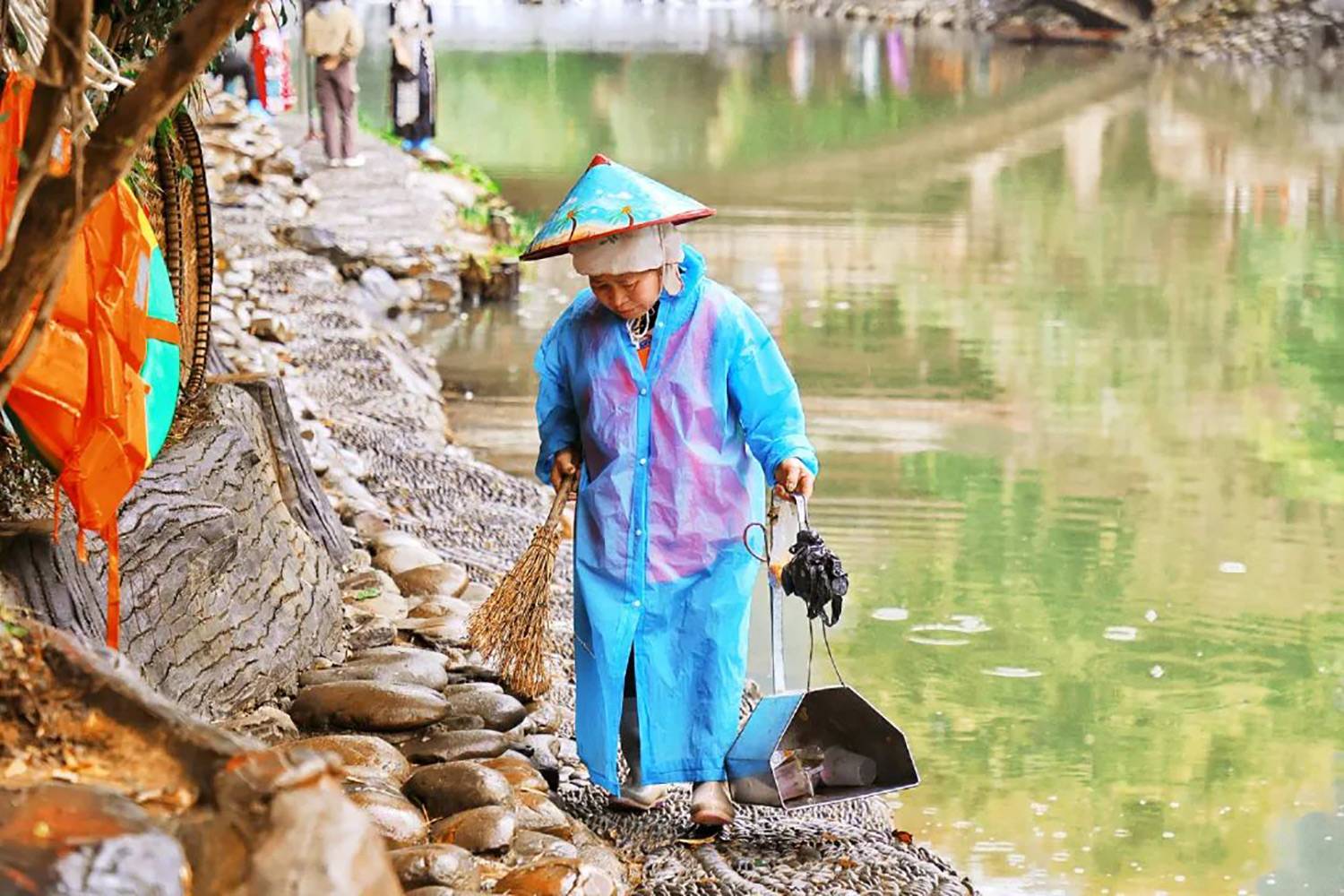 不畏风雨的环卫人员,用坚守擦亮景区“颜值”