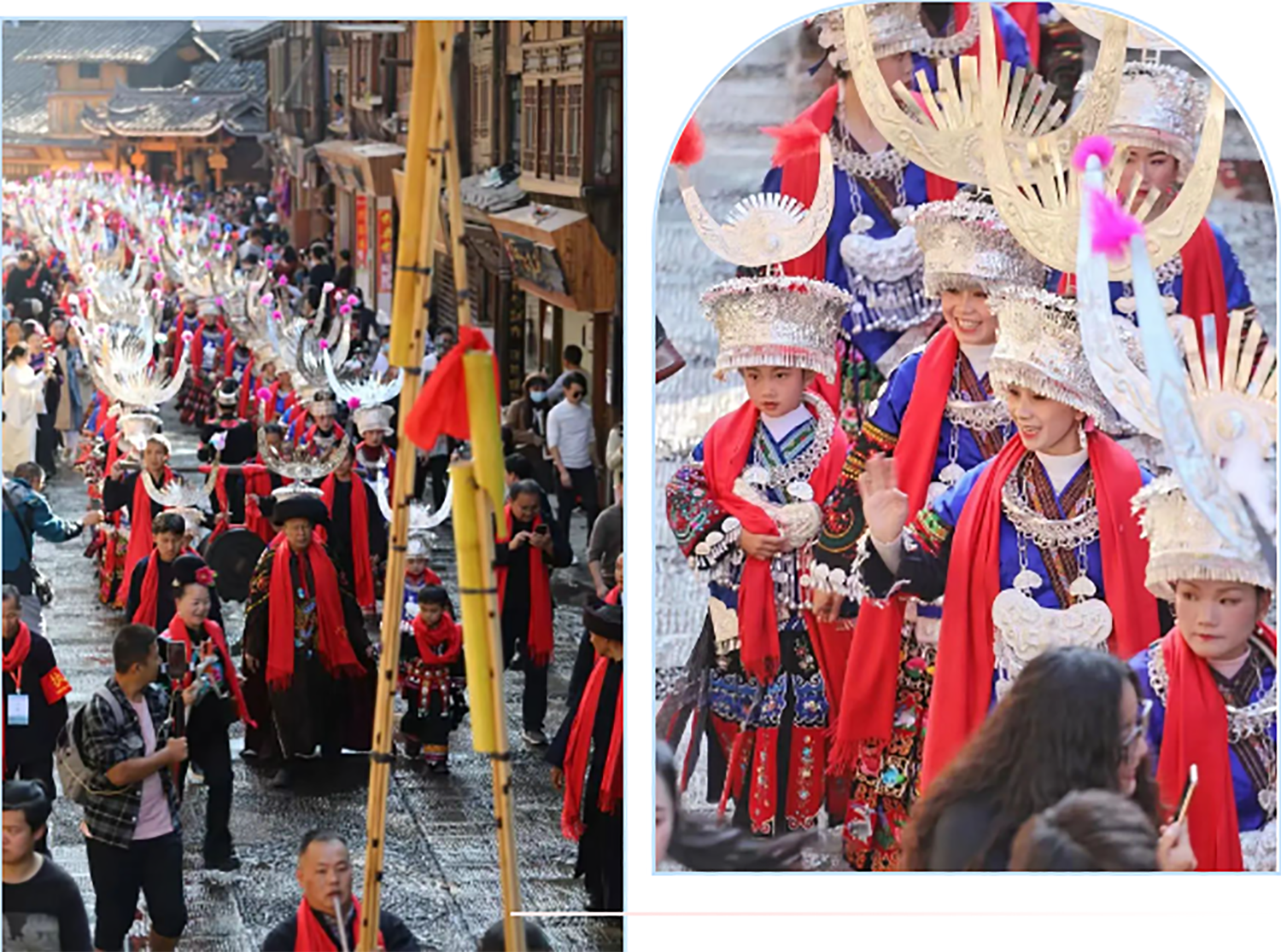 从气势磅礴的苗家鼓舞到精致细腻的刺绣展示,从悠扬欢快的芦笙舞乐到味蕾享受的长桌宴……每一项活动都展示了苗族深厚文化底蕴的灵动鲜活。