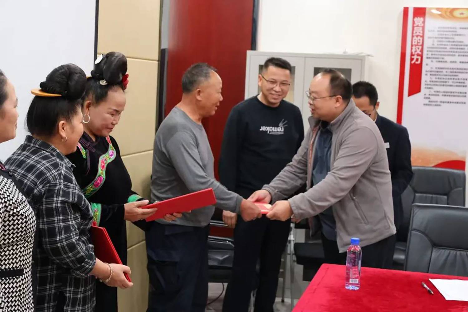 西江旅游集团纪委书记、监事长刘平廷、西江旅游集团财务总监、工会委员会主席喻茂成、西江旅游集团总经理助理杨再勇为四位退休职工颁发退休荣誉证书、鲜花和慰问金,衷心感谢四位同志数十载把自己的青春和力量无私奉献给了公司,向他们致以崇高敬意。希望退休职工发扬“薪火相传”作用,继续为西江景区的发展献计献策、发挥余热,常回家看看,祝愿他们把退休生活当作人生的另一个转折点,调整好心态,锻炼好身体,将自己的退休生活过得丰富多彩。