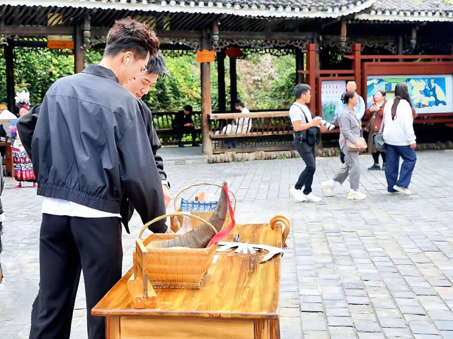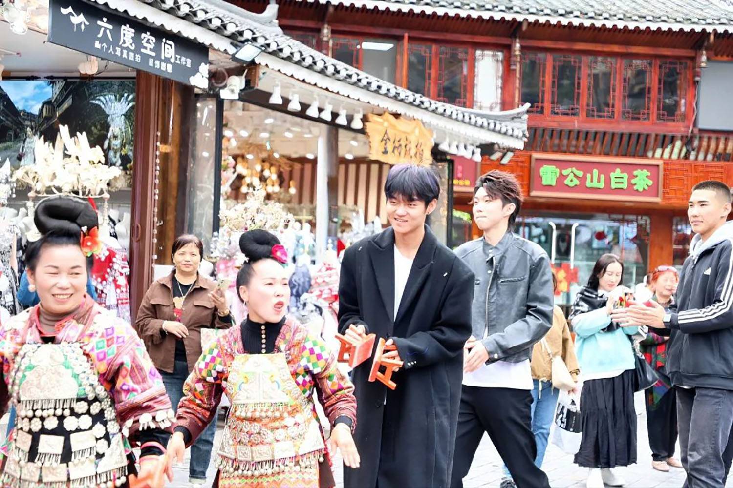 世界先生们走进苗寨,河边吊脚楼如同画卷般展开,一座座古朴典雅的风雨桥映入眼帘,飞檐翘脚落于白水河上。在苗家阿姐的热情邀请下,世界先生们跟随节奏,和阿姐们欢快地跳起板凳舞,感受苗家人的热情好客和真挚淳朴。